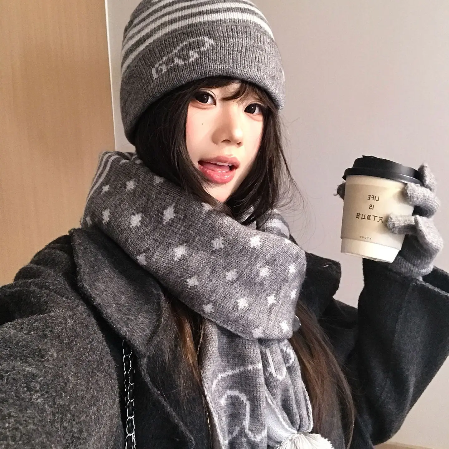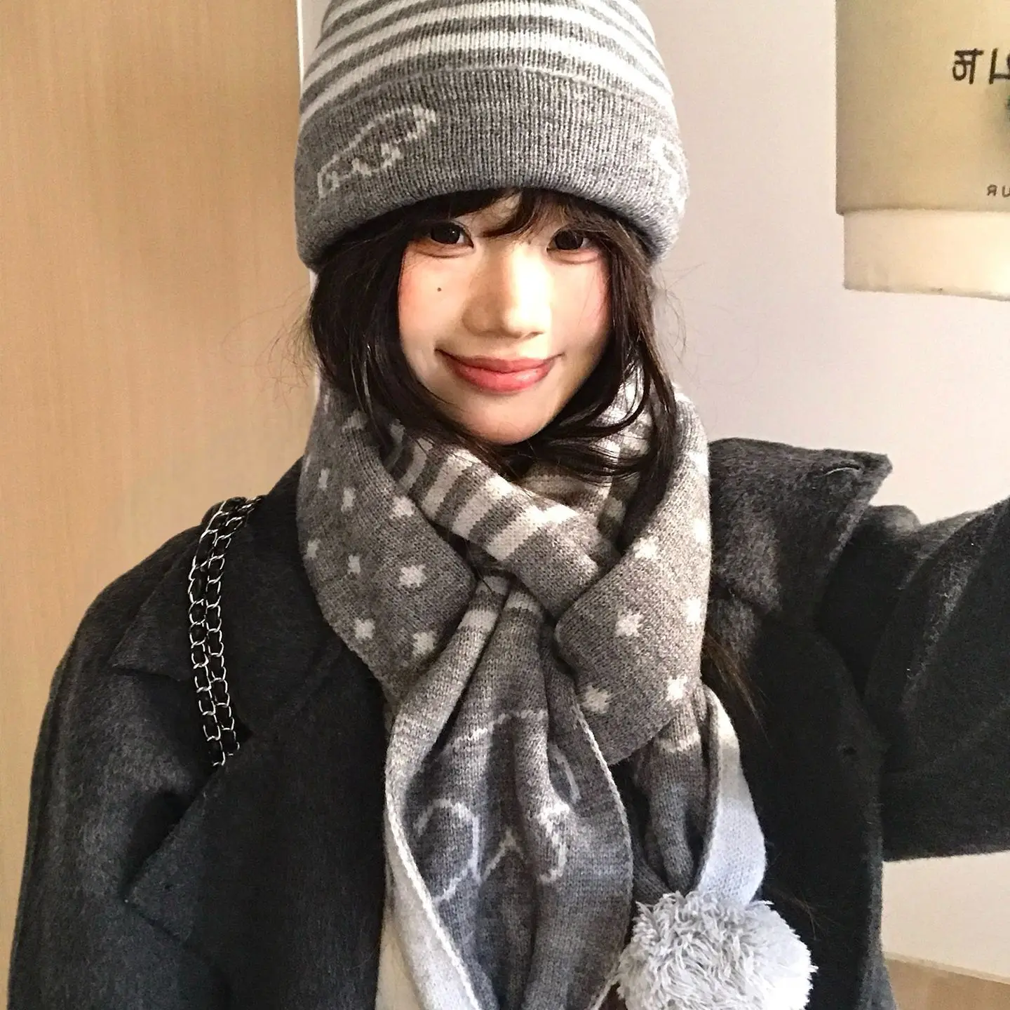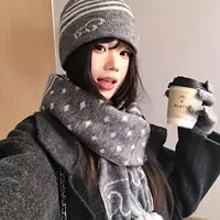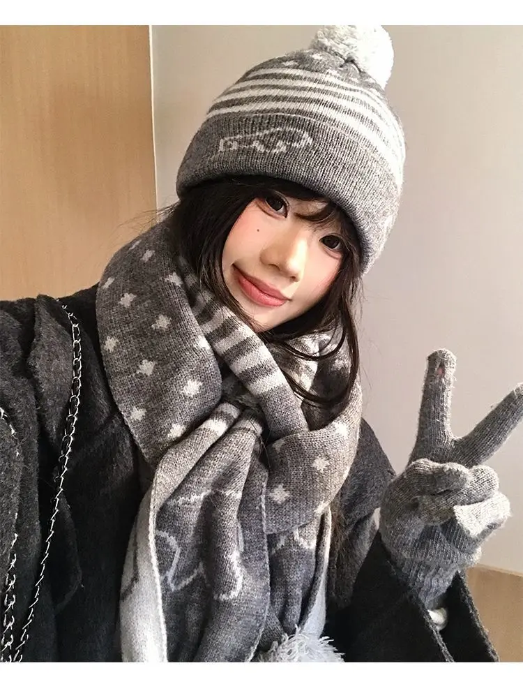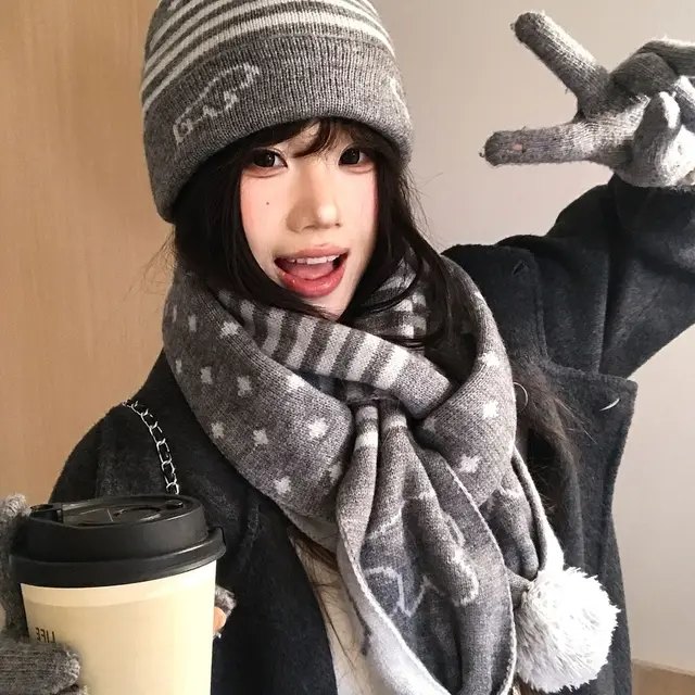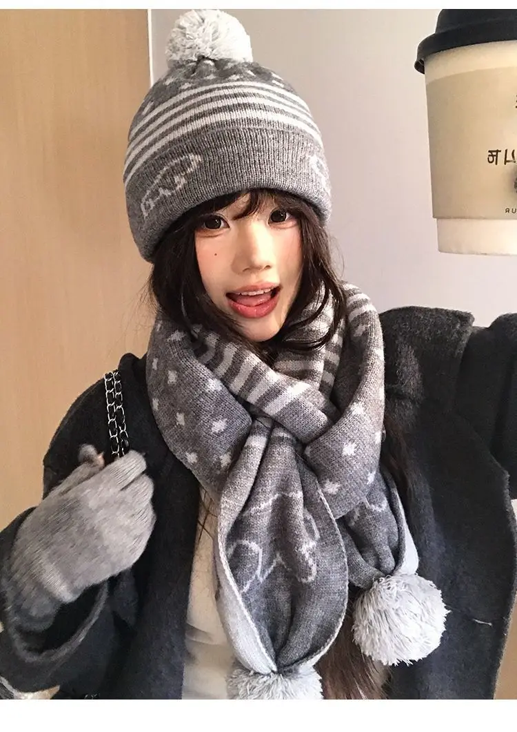 Crafted for winter, this gray knit hat and scarf set offers unparalleled warmth and comfort, keeping you snug during the cold months.