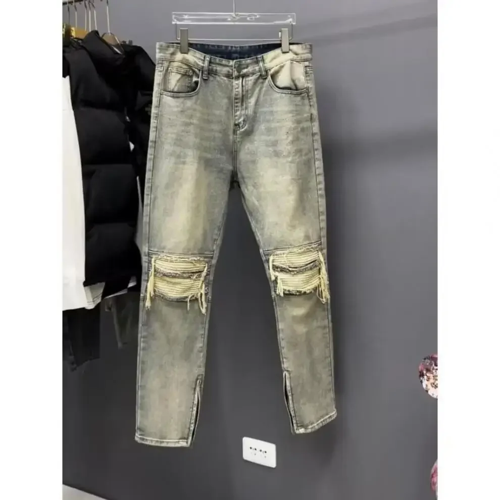 • American-style Vibe : Embrace the classic American aesthetic with these high street retro ripped jeans, perfect for a casual yet stylish look.