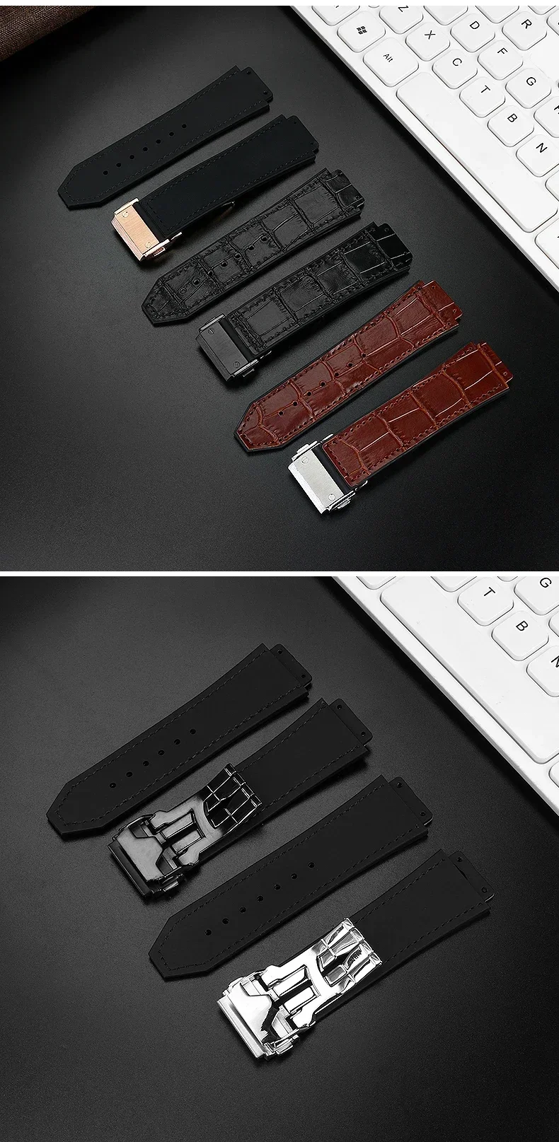 Watch Band for HUBLOT BIG BANG 25*19mm Waterproof Men’s Watch Strap Chain Watch Rubber Genuine
