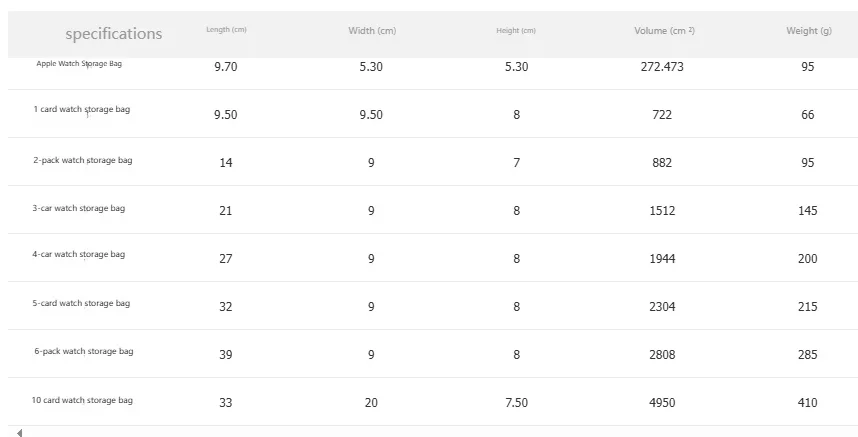 Note: The product only contains a storage bag and does not include a watch. The dimensions are measured manually, and any errors are considered normal.