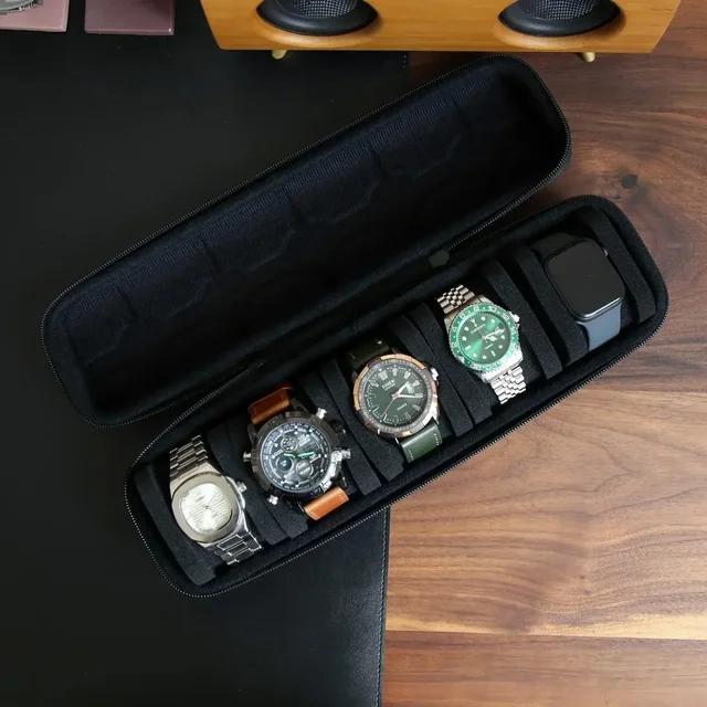 • The 5 watch roll Designed with a compact and hard construction, this watch case is perfect for travel, hiking, or any outdoor activities. It comes with a handle for easy carrying. This series of watch storage box is available in 1, 2, 3, and 5 slot , making it suitable for the whole family to carry their watches while on the go.