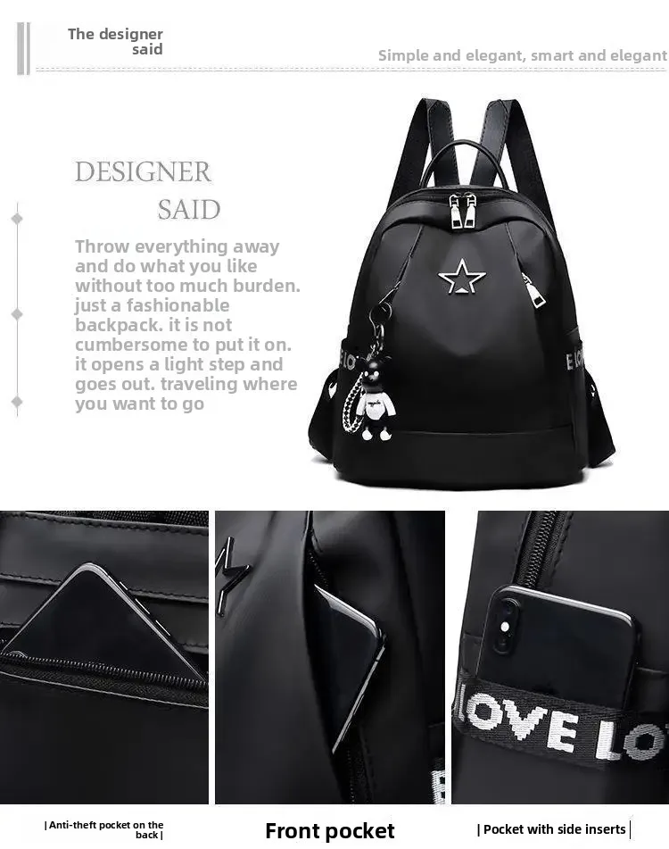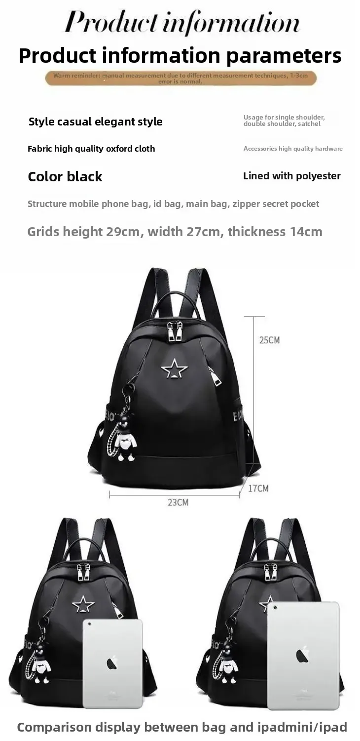 Water-Resistant Star Print Women’s Backpack Hot Sale Of The Season Trend Student Travel Bag Oxford