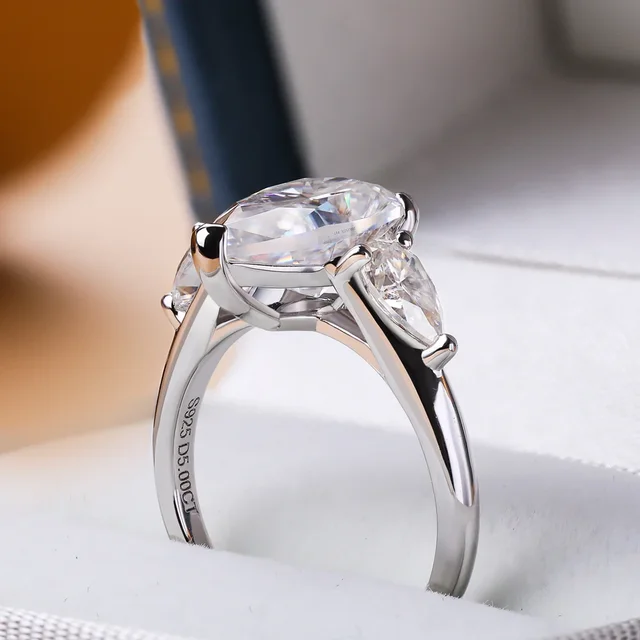 3.7cttw Moissanite Ring:7*11mmmm(3ct)+3*6mm*2pcs moissanite
