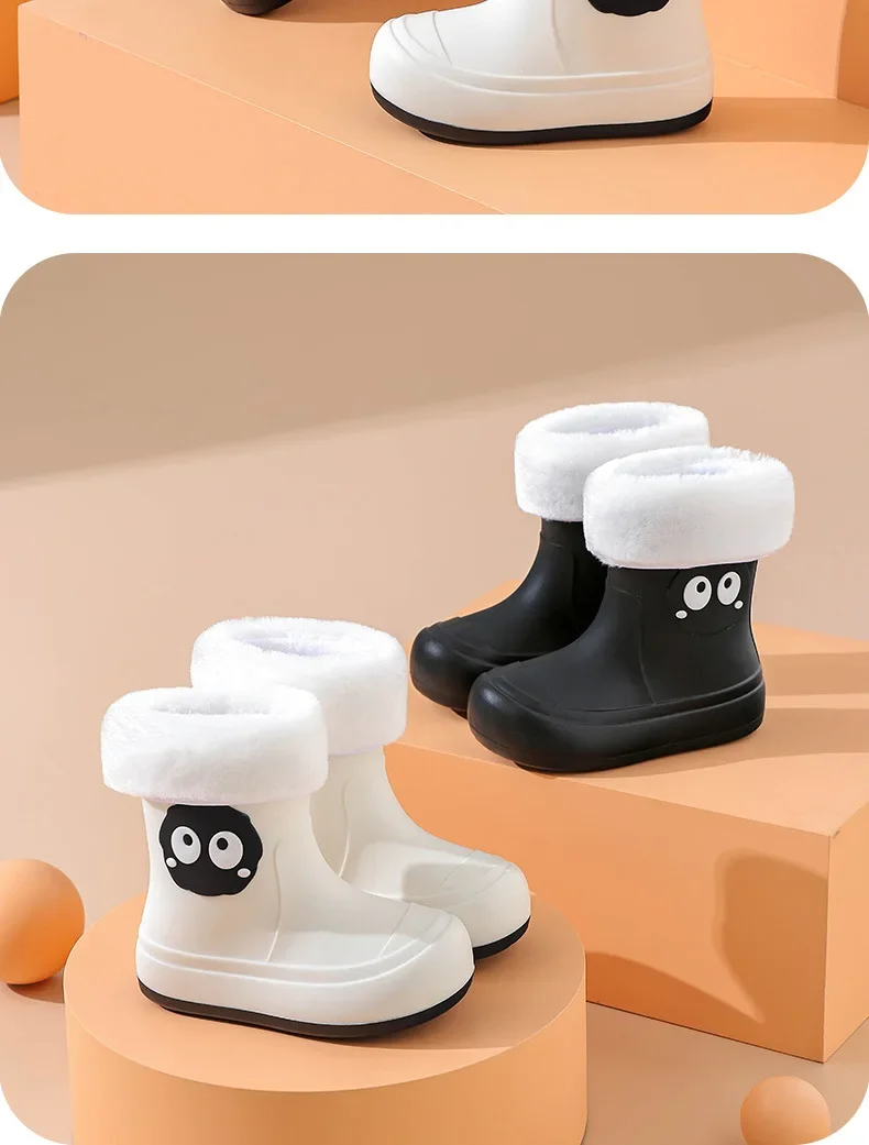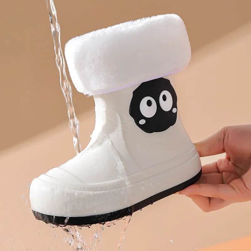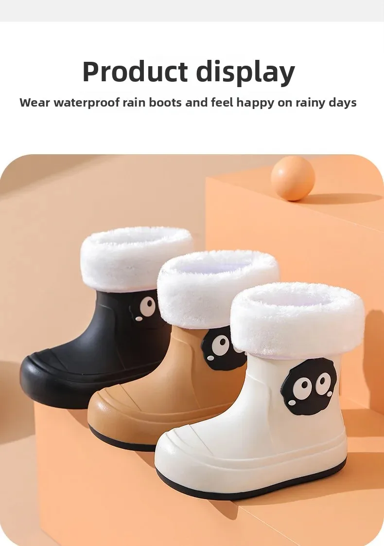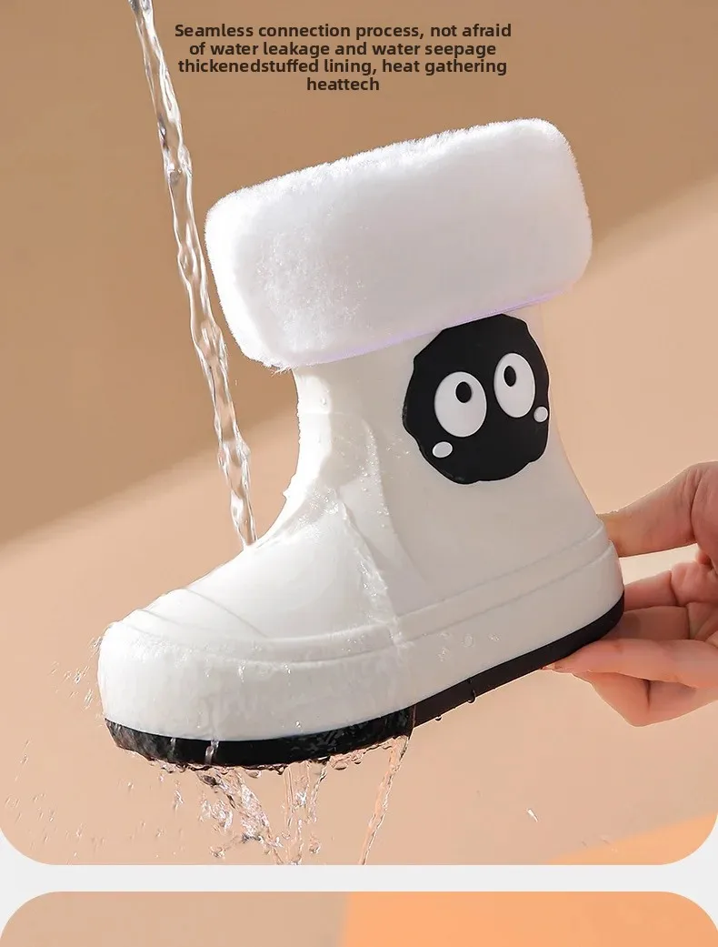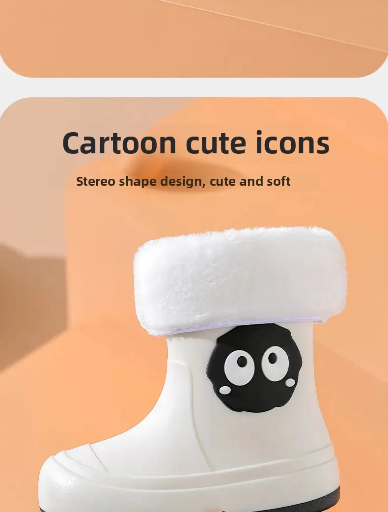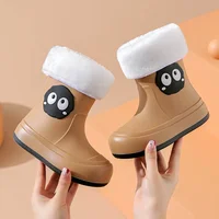 Waterproof Anti-slip Cotton-lined Children's Rain Boots Cute Cartoon Design for Boys And Girls Outdoor Wear Student Shoes