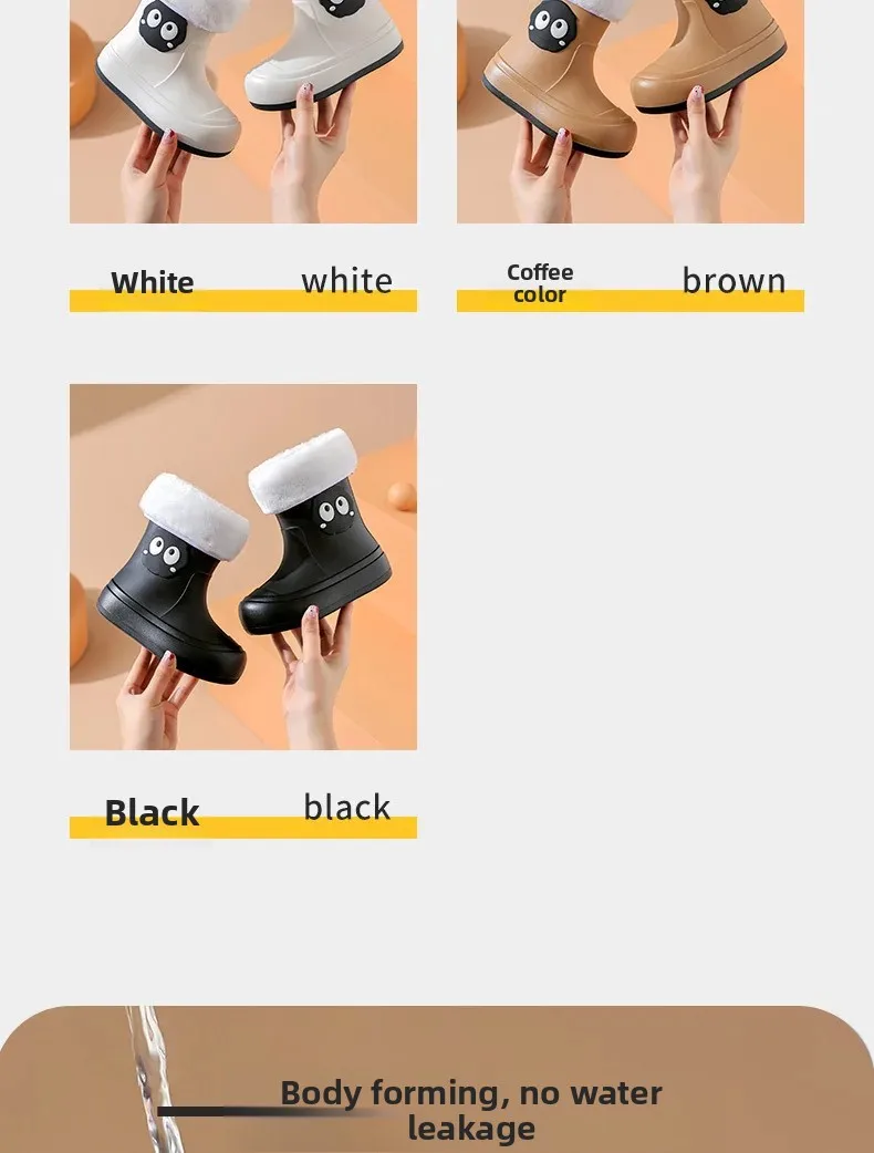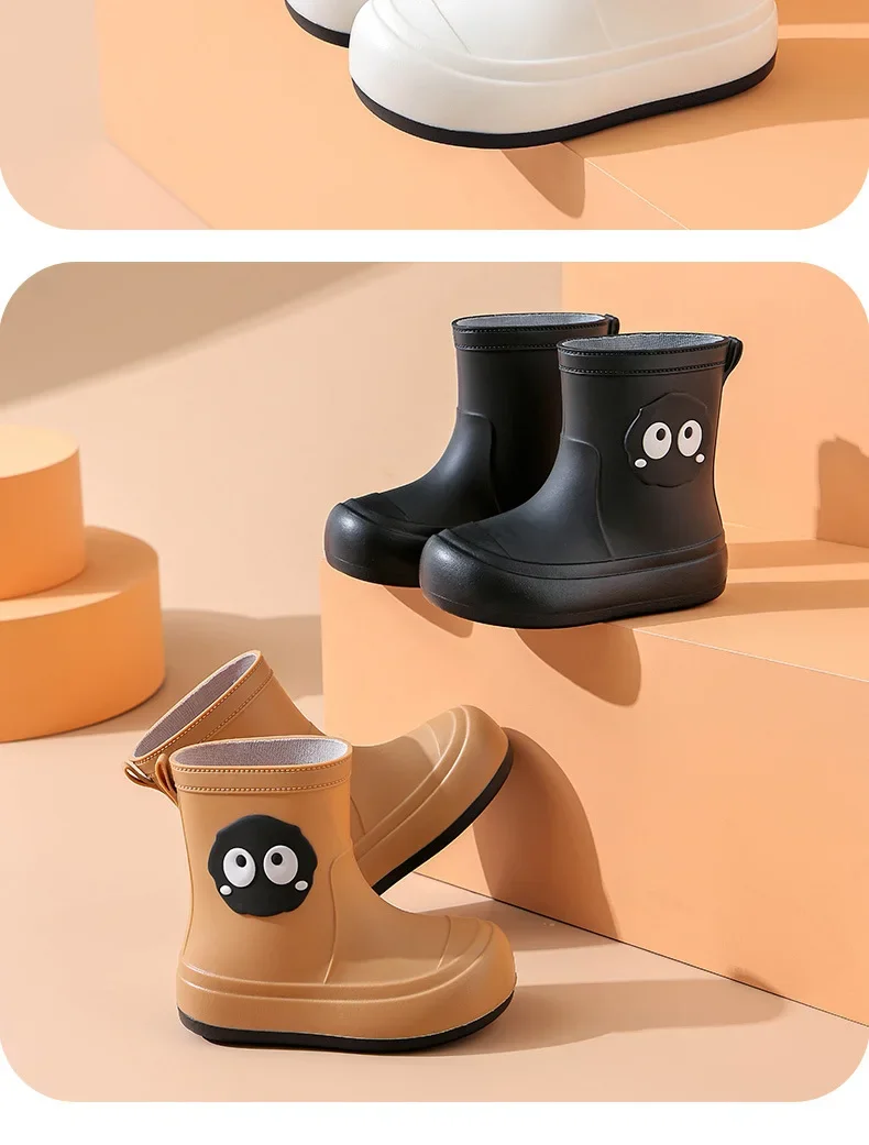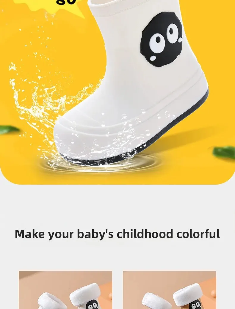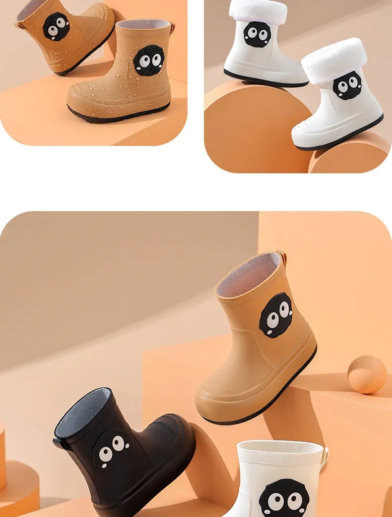 Waterproof Anti-slip Cotton-lined Children's Rain Boots Cute Cartoon Design for Boys And Girls Outdoor Wear Student Shoes