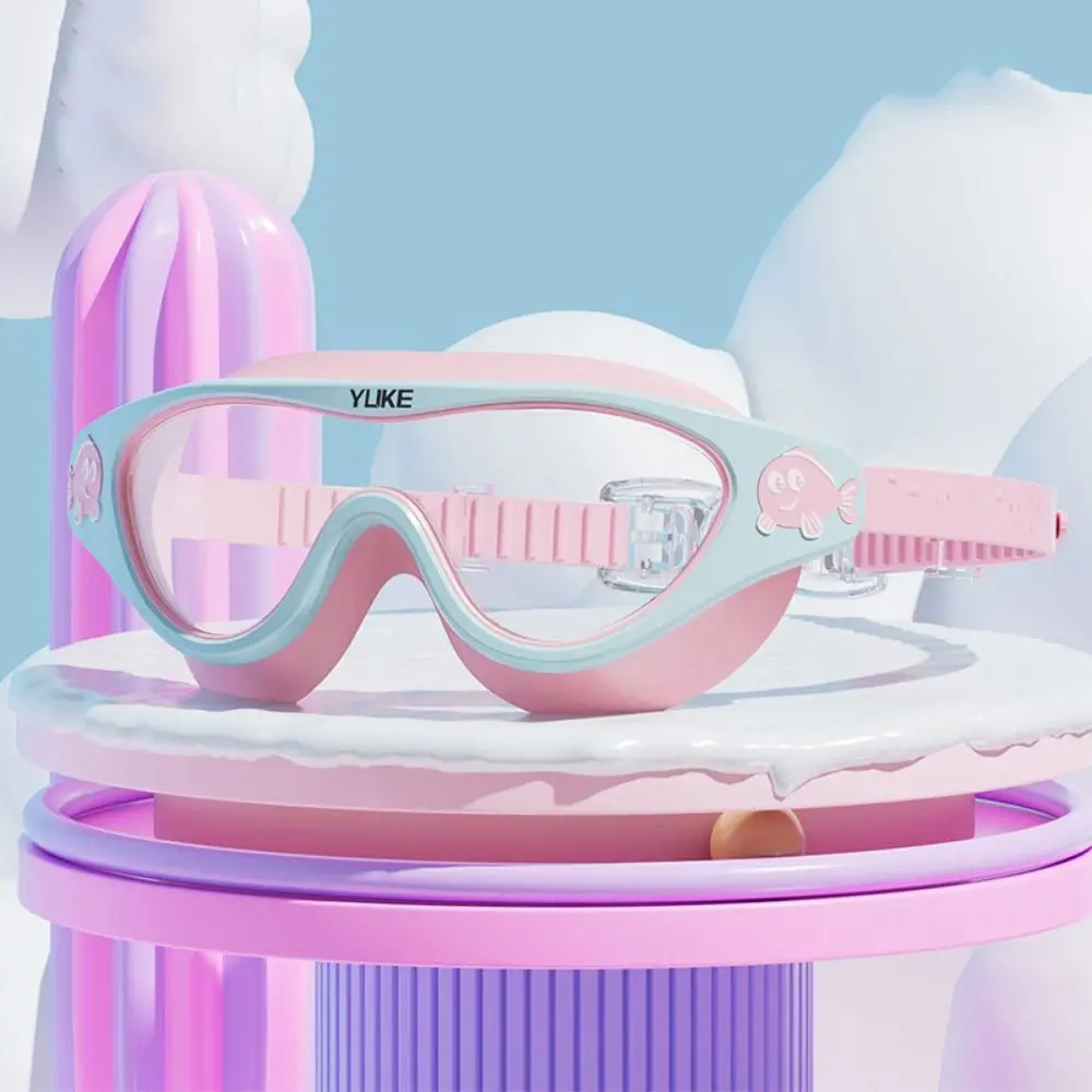 Waterproof Big Frame Swim Goggles Anti Fog with Earplugs Children Swim Glasses Leak-proof Adjustable Swimming Eyewear for Kids
