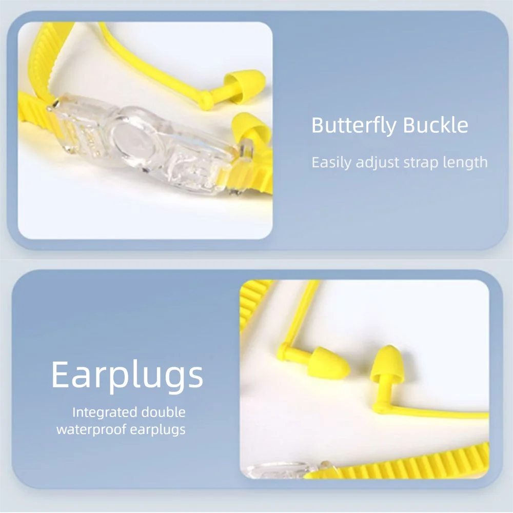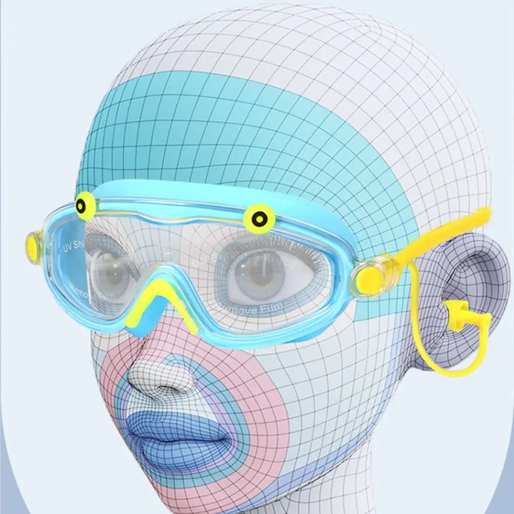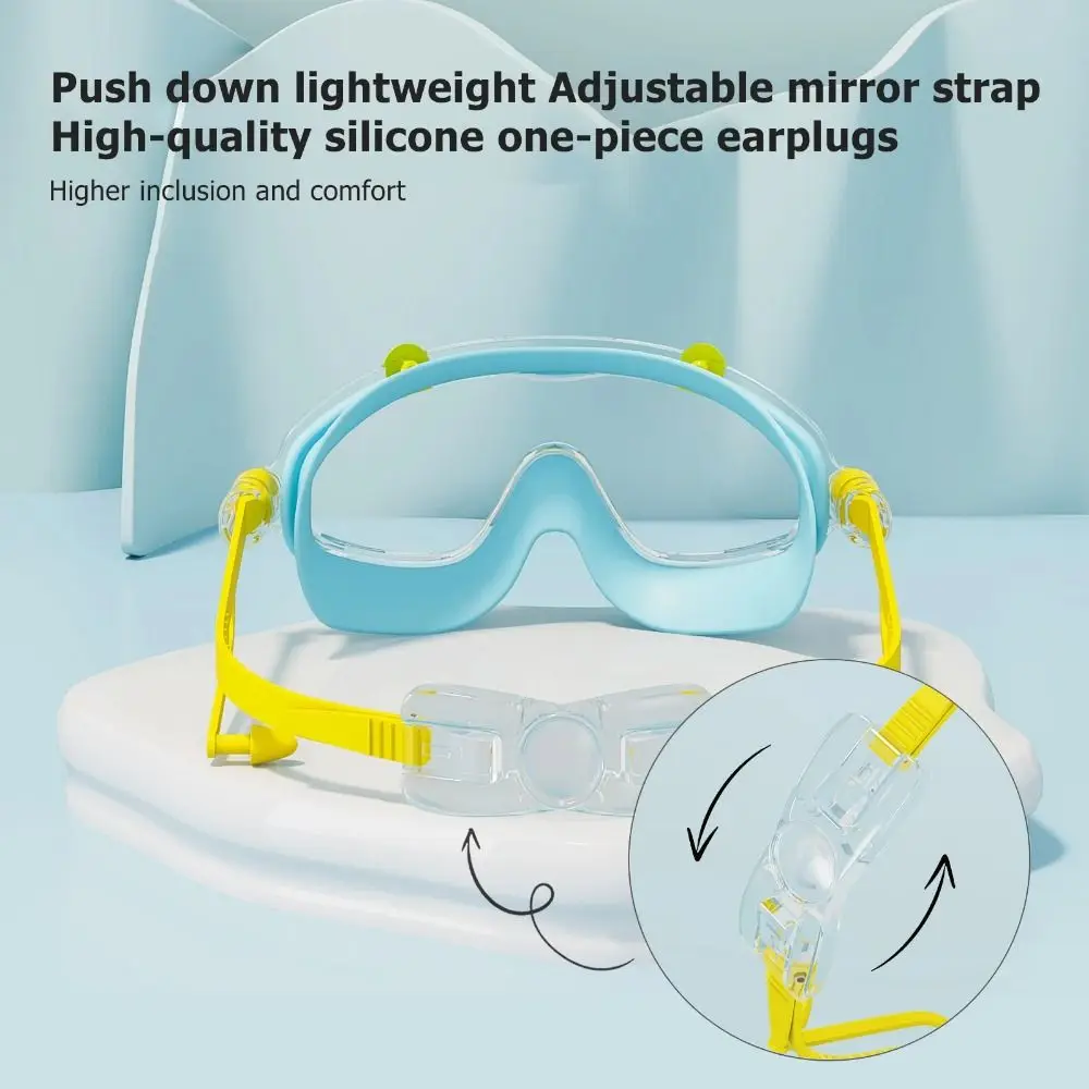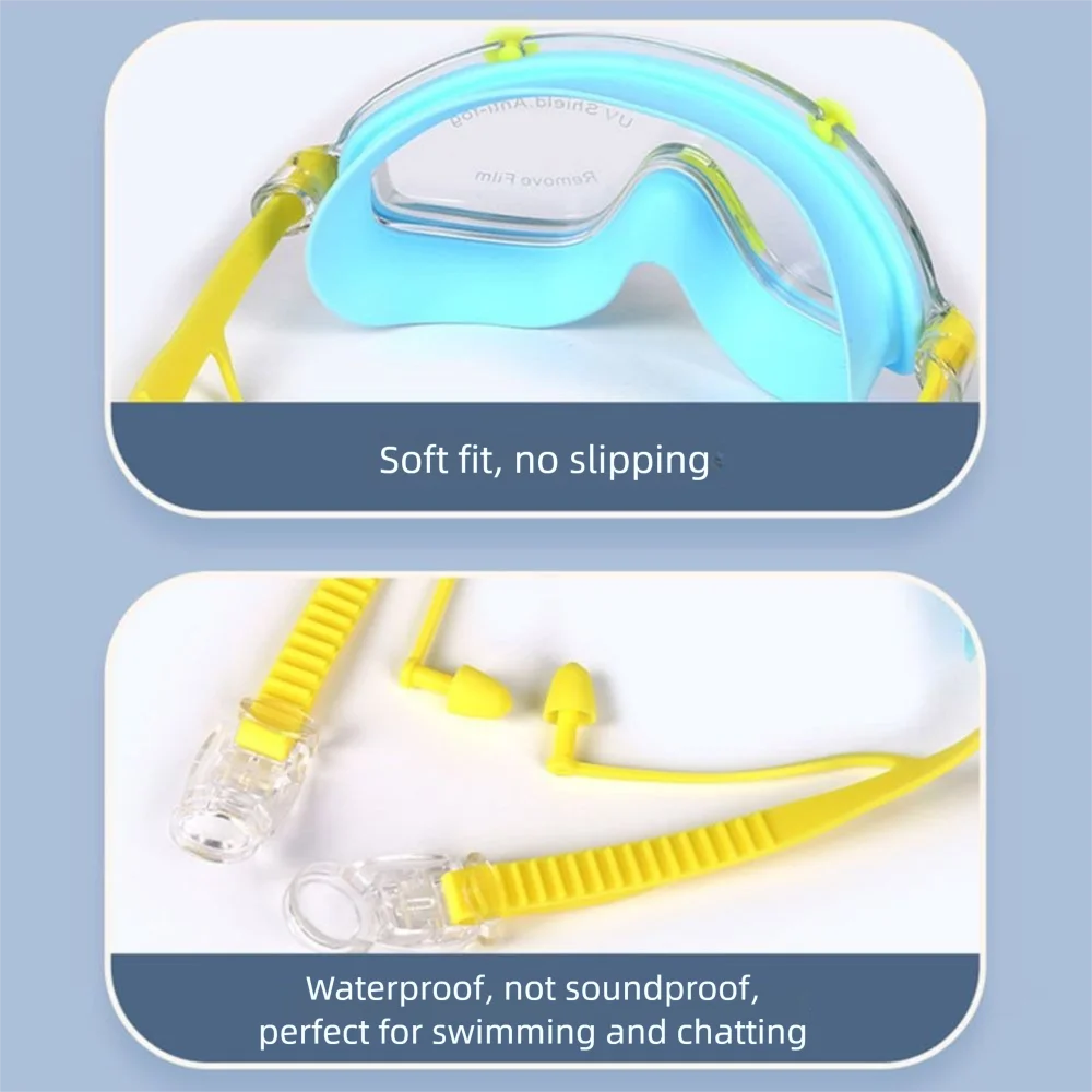 Waterproof Big Frame Swim Goggles Anti Fog with Earplugs Children Swim Glasses Soft Silicone Non-slip Swimming Eyewear for Kids