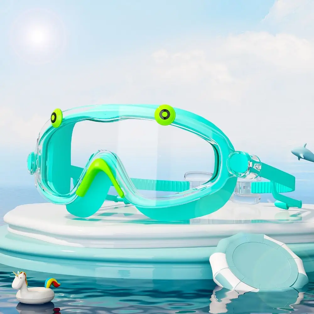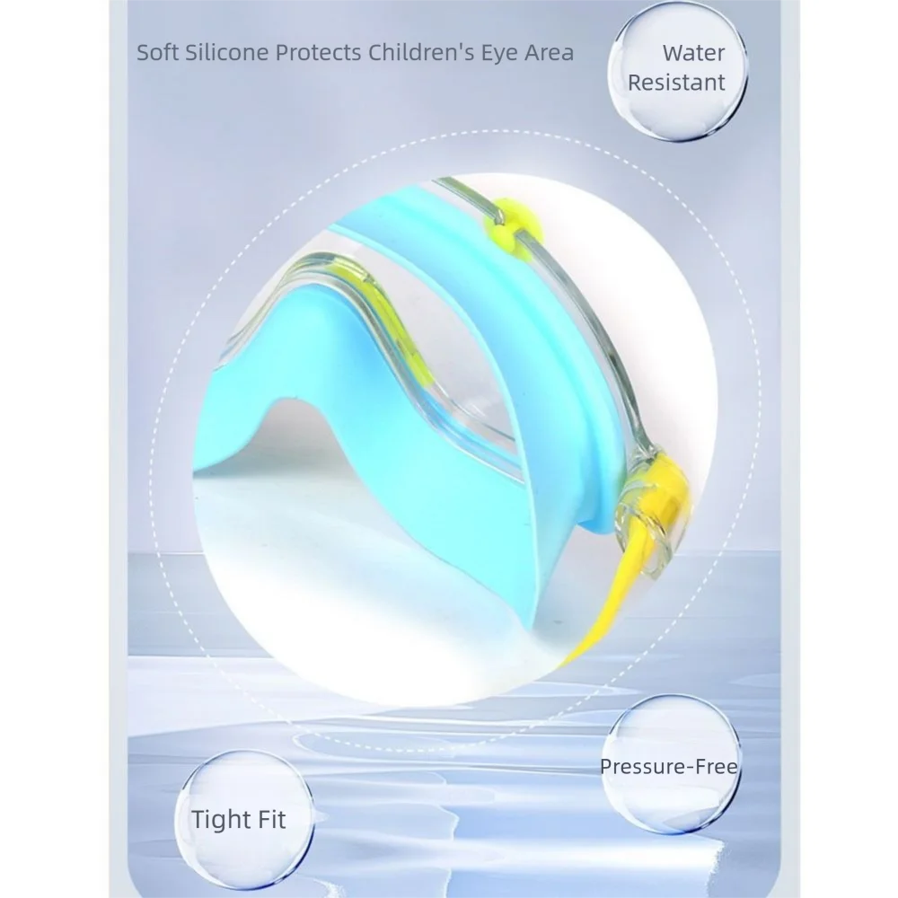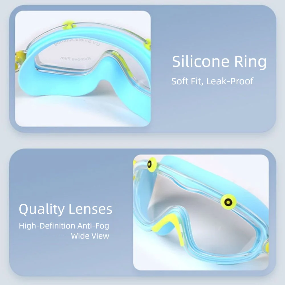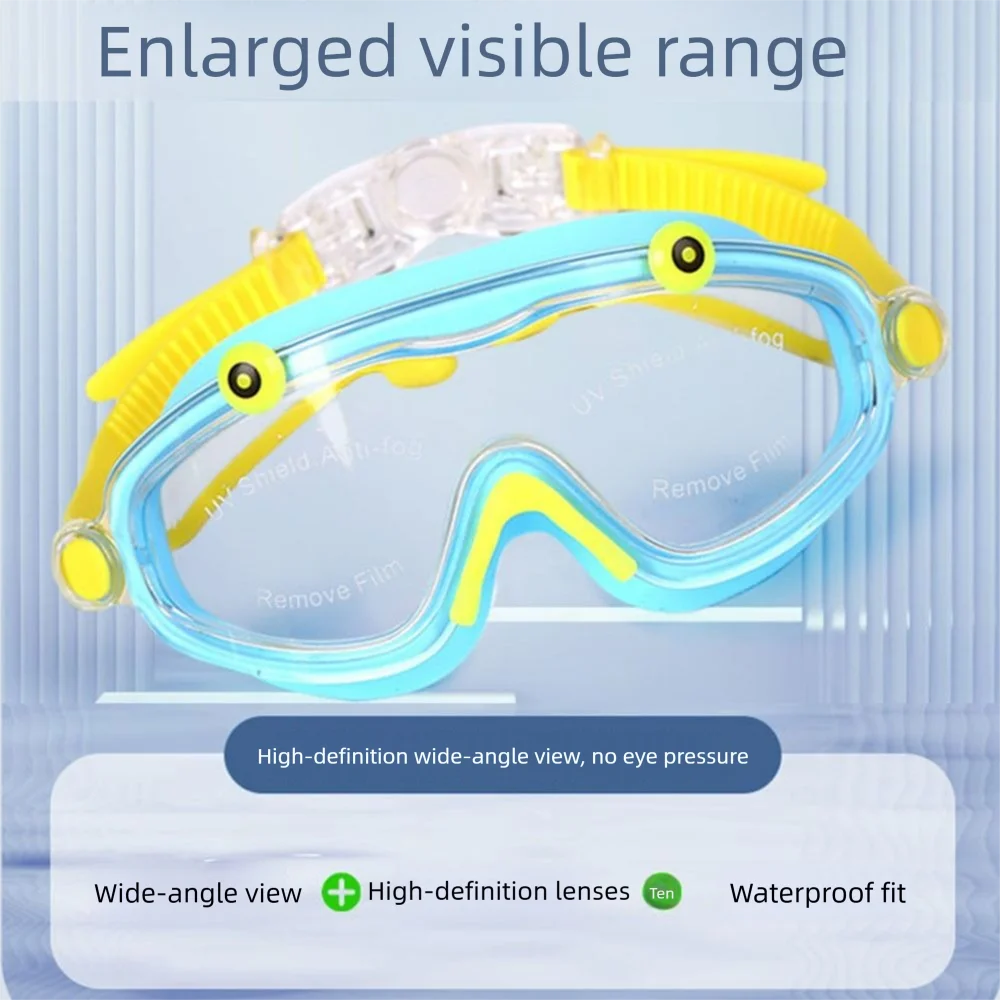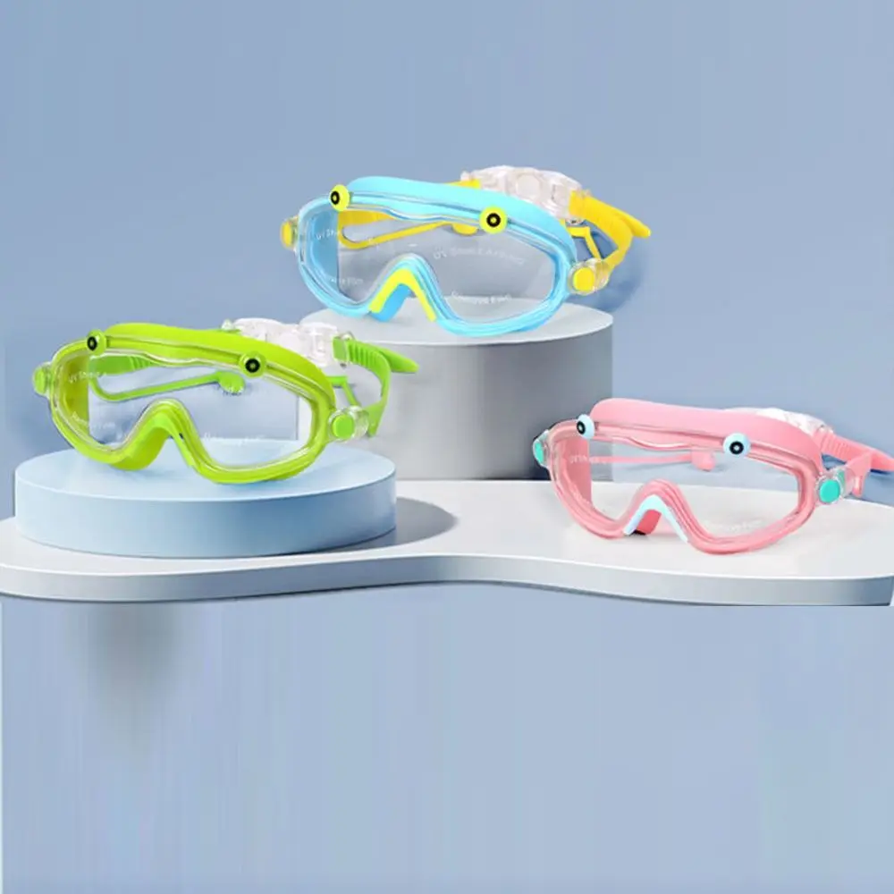 Waterproof Big Frame Swim Goggles Anti Fog with Earplugs Children Swim Glasses Soft Silicone Non-slip Swimming Eyewear for Kids