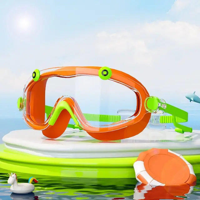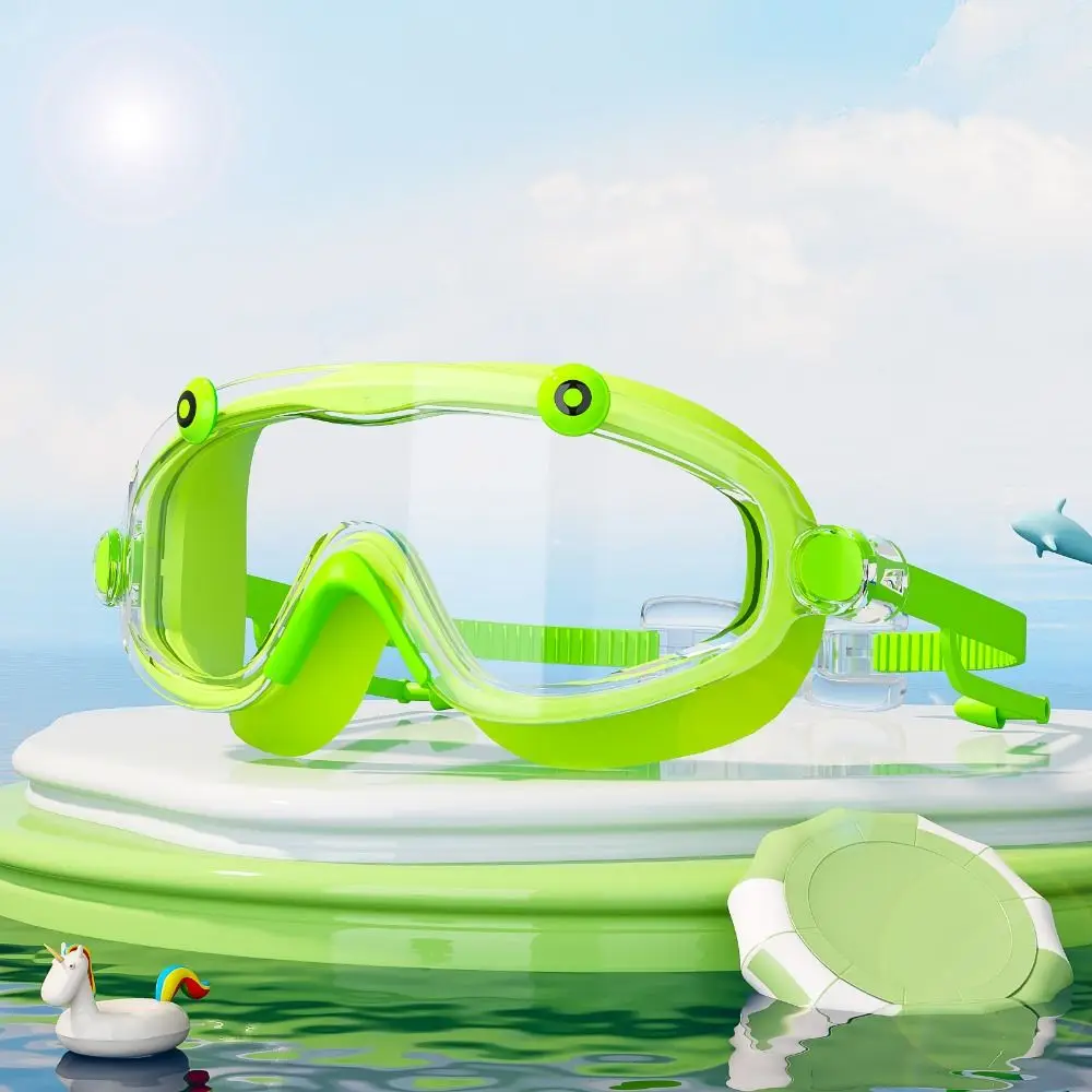 Waterproof Big Frame Swim Goggles Anti Fog with Earplugs Children Swim Glasses Soft Silicone Non-slip