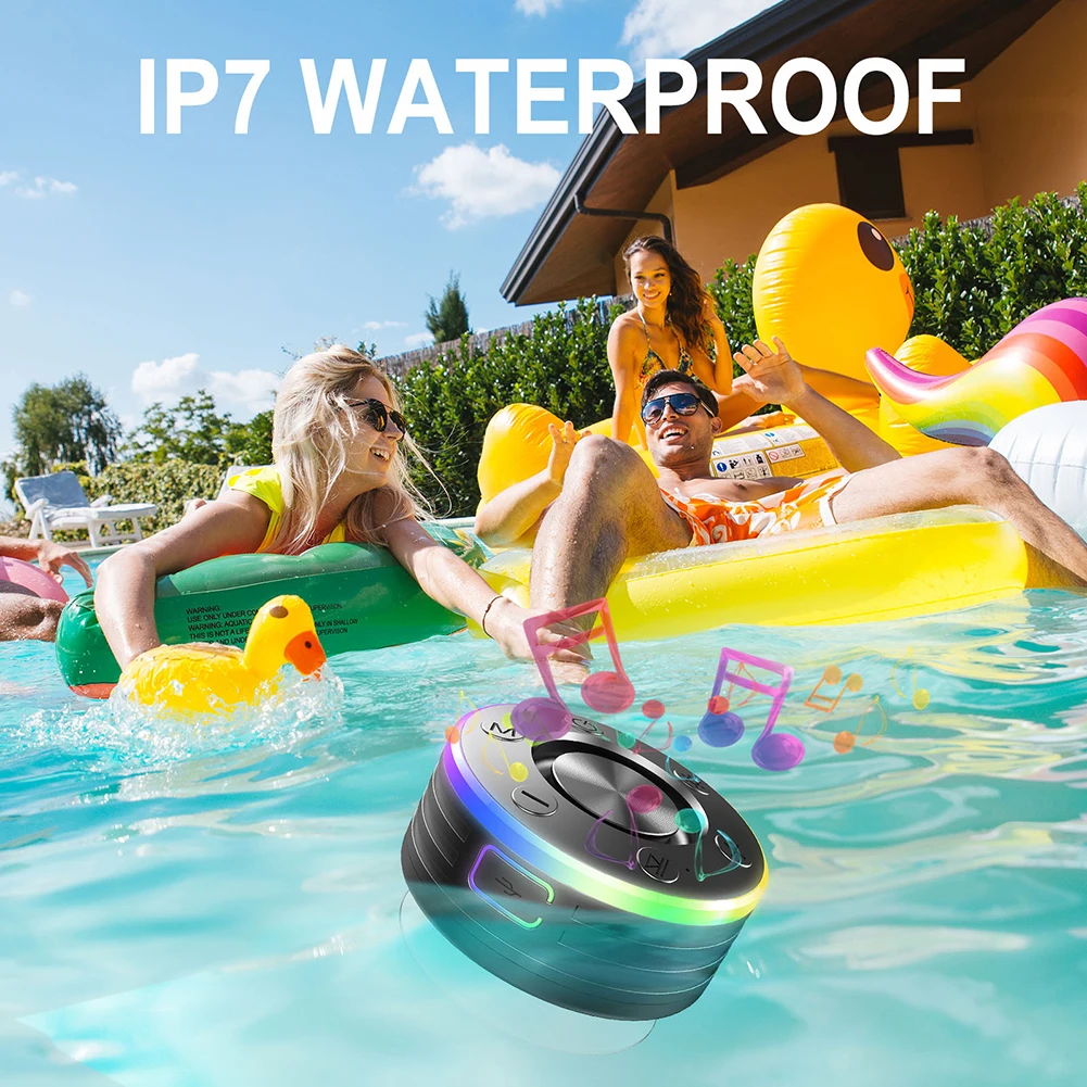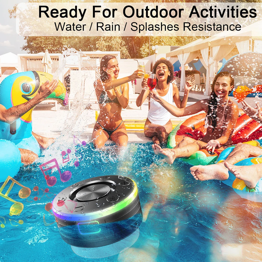 Waterproof Shower Speaker with Suction Cup/RGB Light Bluetooth-Compatible 5.2 Portable Wireless Speaker Hands-Free Call/FM Radio Stereo Subwoofer Built-in Mic for Party/Outdoor/Bathroom/Travel