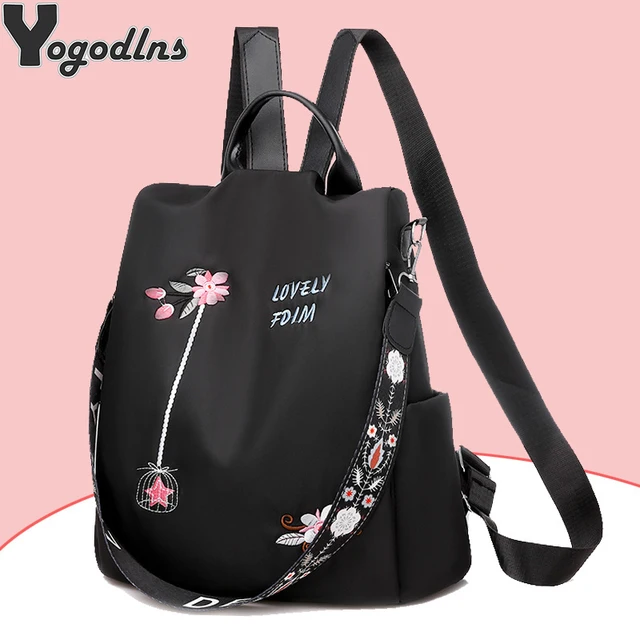 Waterproof Oxford Women Backpack Fashion Anti-theft School Bag Embroidery Designer Female Large Capacity Travel Shoulder Handbag