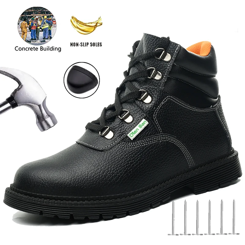 Waterproof Safety Boots Men Indestructible Steel Toe Work Boots Anti-smash Stab-resistant Safety Shoes