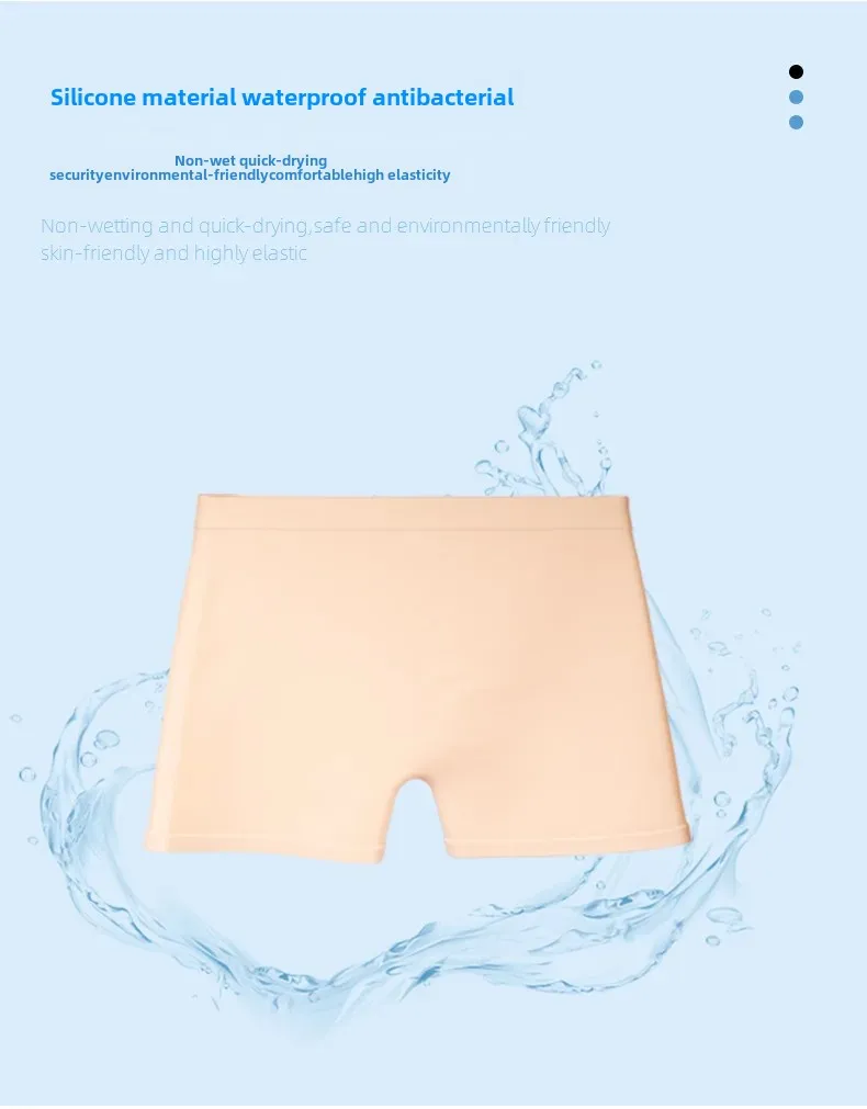 • Waterproof Material : Crafted from high-quality silicone, these swimming trunks offer superior waterproofing, keeping your child dry and comfortable in the water.
