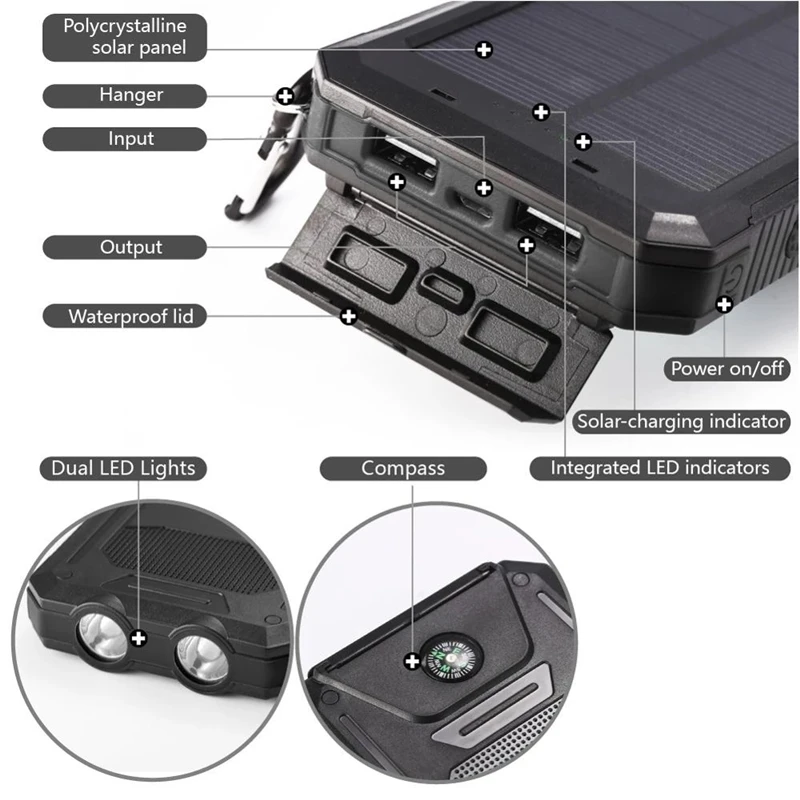 20000mAh Solar Power Bank for iPhone 16 Huawei Samsung Xiaomi Powerbank Portable Solar Charger External Battery Pack Power Bank