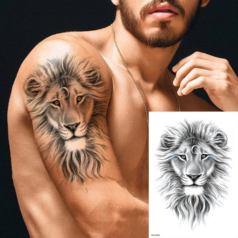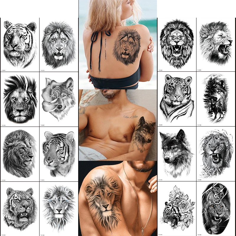 Waterproof Temporary Tattoo Sticker Forest Lion Tiger Bear Flower Tattoos Women Leopard Wolf Crown Body Art Arm Fake Tattoo Men
