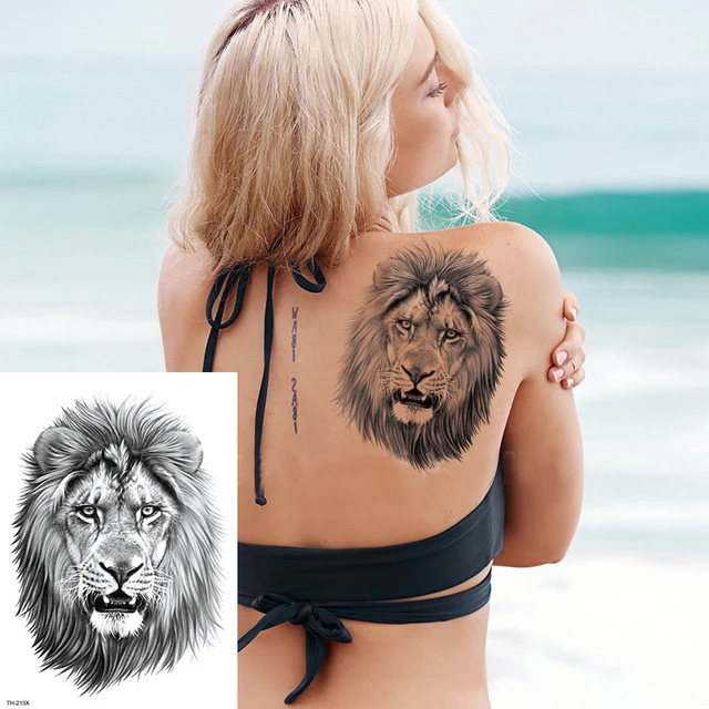 Waterproof Temporary Tattoo Sticker Forest Lion Tiger Bear Flower Tattoos Women Leopard Wolf Crown Body