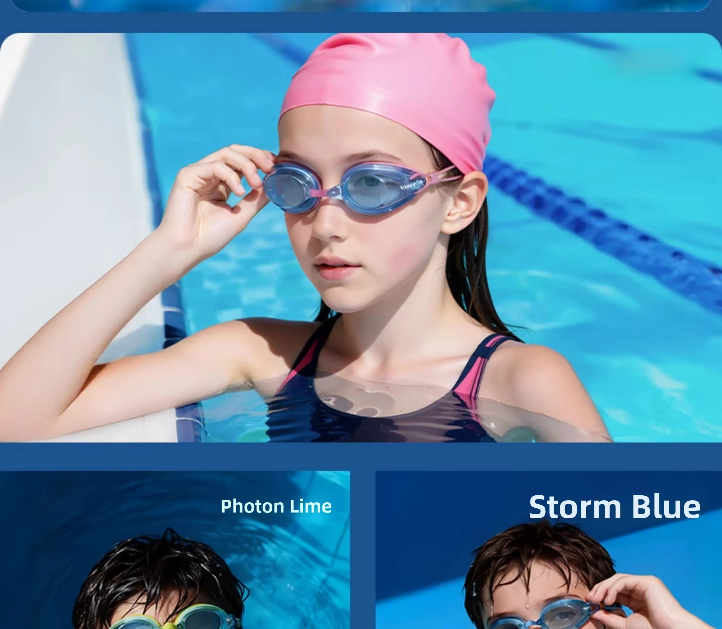 The WaterTime children’s swimming goggles feature an anti-fog function, ensuring clear vision underwater for optimal performance.