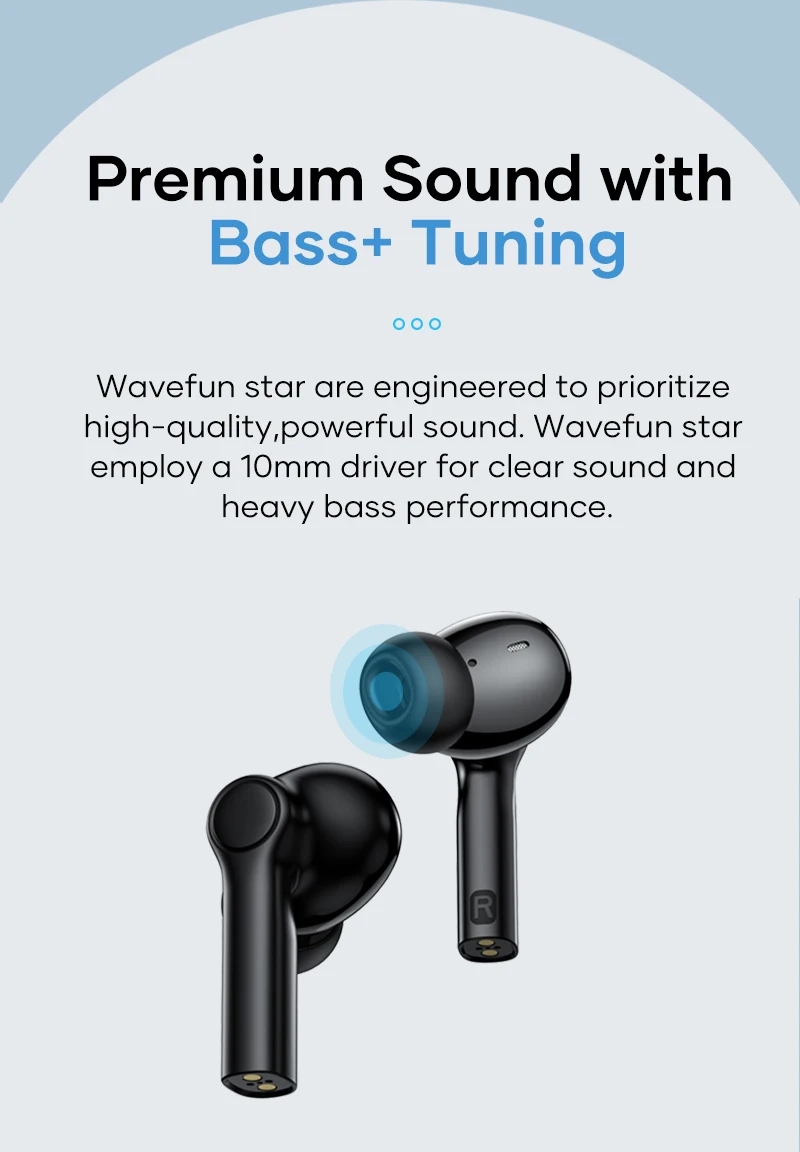 Wavefun star are engineered to prioritize high-quality,powerful sound. Wavefun star employ a 10mm driver for clear sound and heavy bass performance.