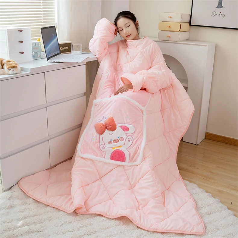 Wearable Blanket Cozy Fleece Warm Wrap Throw with Arms – Sherpa Blanket Hoodie as Gifts for Mom