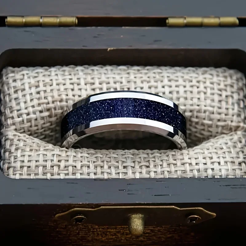 Garnet Ring Tungsten Ring Artificial Red Synthetic Gemstone Inlay Men's Wedding Band Gift Him 8mm Lab Created Garnet