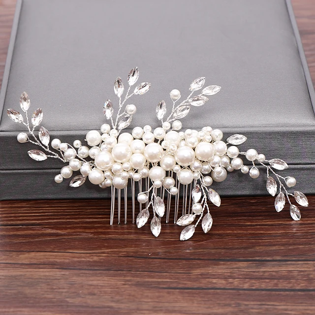 Wedding Hair Combs Bridal Hair Accessories For Women Hair Jewelry Silver Color Pearl Rhinestone Head