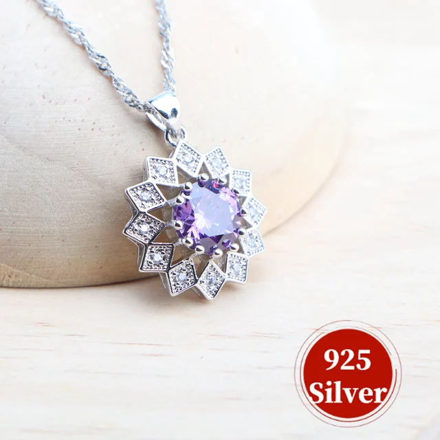 Wedding Silver 925 Jewelry Sets Bracelets Rings Earrings Pendant Purple Cubic Zirconia Necklace For Women
