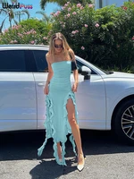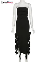 Weird Puss Elegant Strapless Dress Women Irregular Tassel 2023 Summer Trend Skinny Split Maxi Bodycon