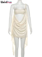 Weird Puss Irregular Sexy Dress Women Pleats Single Shoulder Sleeveless Backless Tassel Trend Prom Party