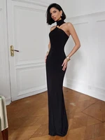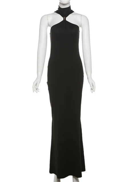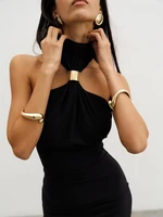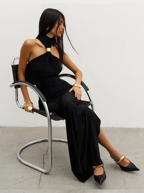 Weird Puss Metal Knots Dress Women Elegant Summer Trend Halter Solid Folds Backless Sleeveless Sexy Slim