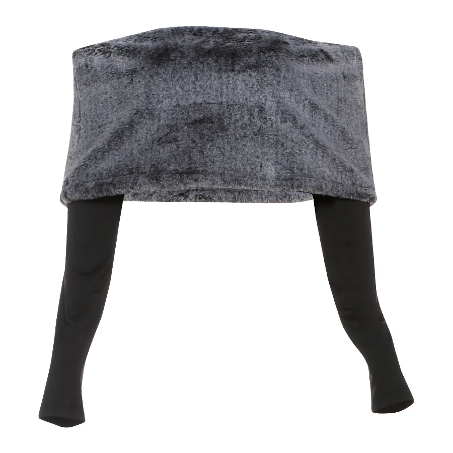 Weird Puss Sexy Furry Patchwork T-Shirt Women Trend Slash Neck Full Sleeve Coquette Midnight Party Club