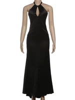 Weird Puss Sexy Halter Backless Dress Women Satin Lace-Up Chest Hollow Zip Peach Hip Elegant Evening