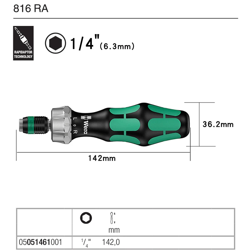 Ratcheting screwdriver with Rapidaptor technology for rapid bit change