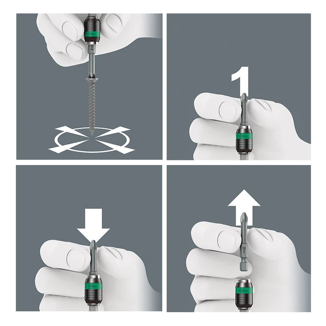 Suitable for bits with 1/4″ external hexagon drive as per DIN ISO 1173-C 6.3.