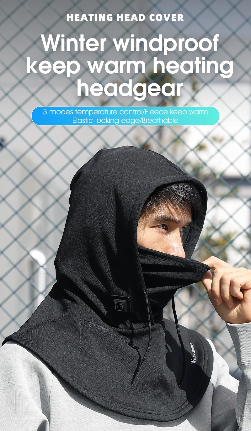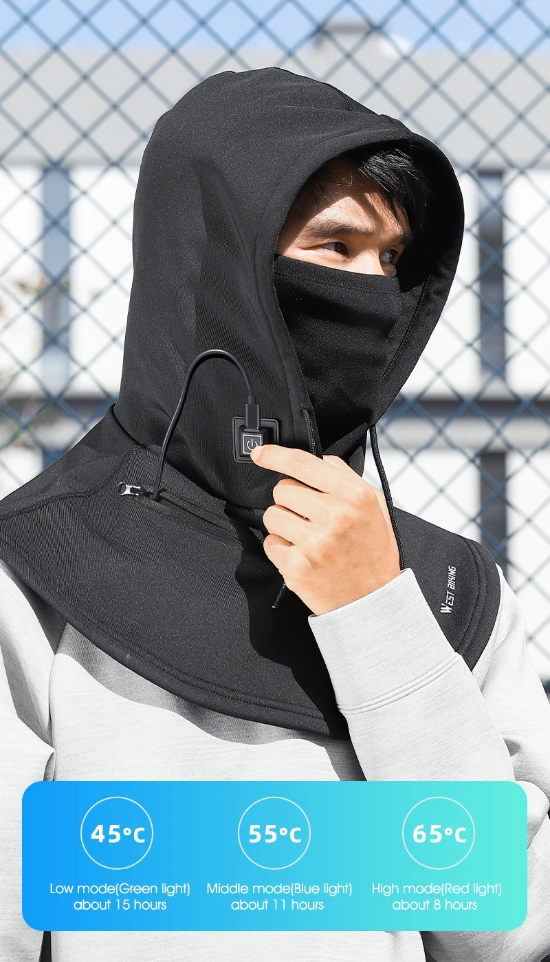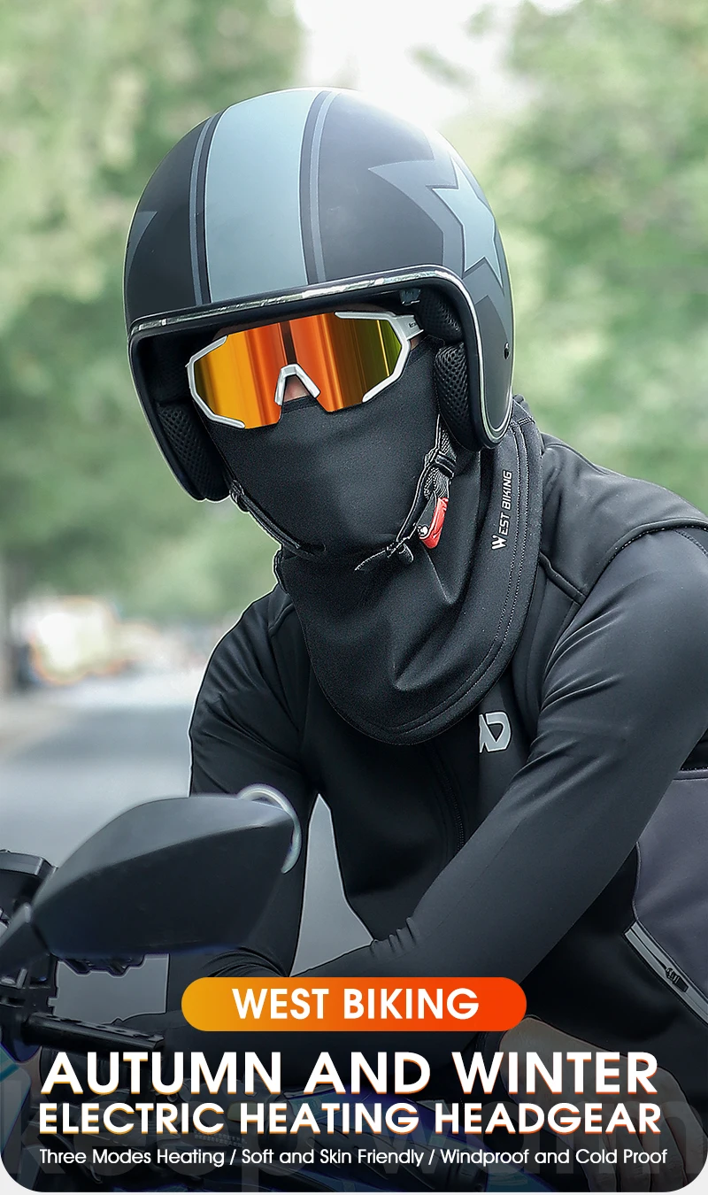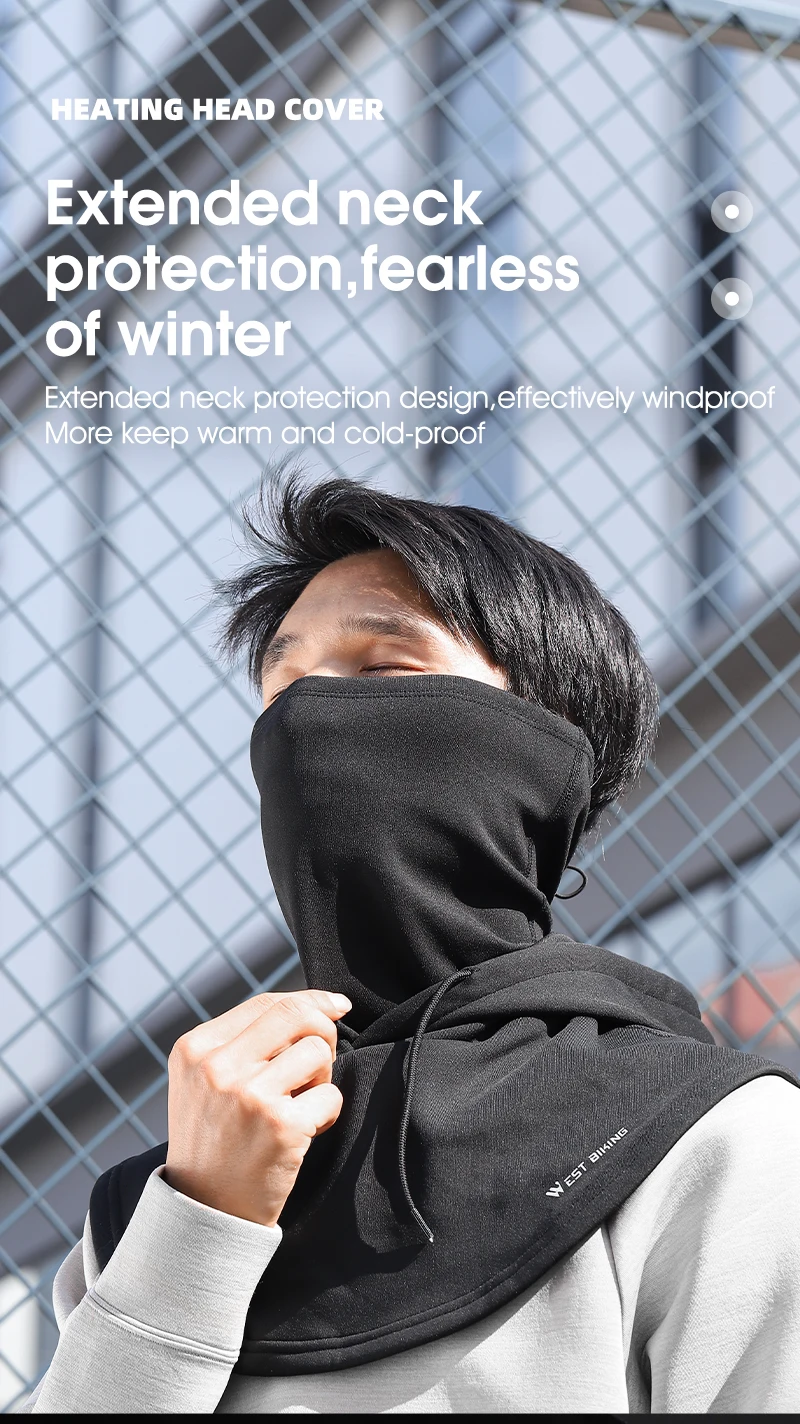 WEST BIKING Electric Heated Cycling Cap Winter Balaclava Hat Warm Face Cover Bike Heating Headgear for Ski Bicycle Motorcycle