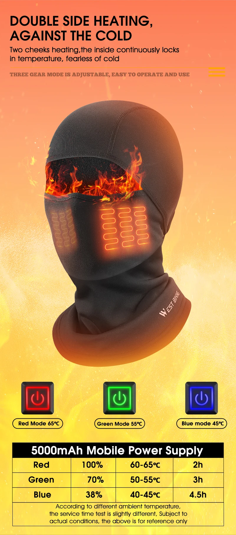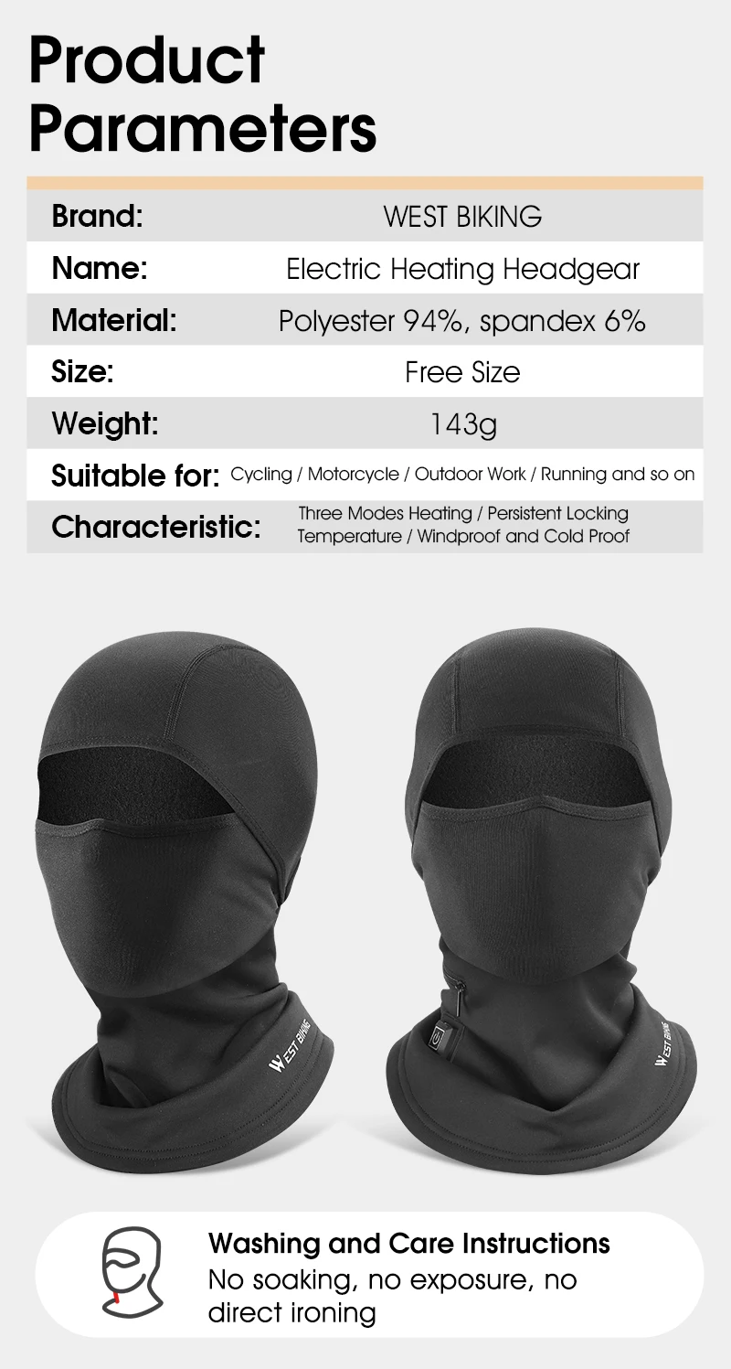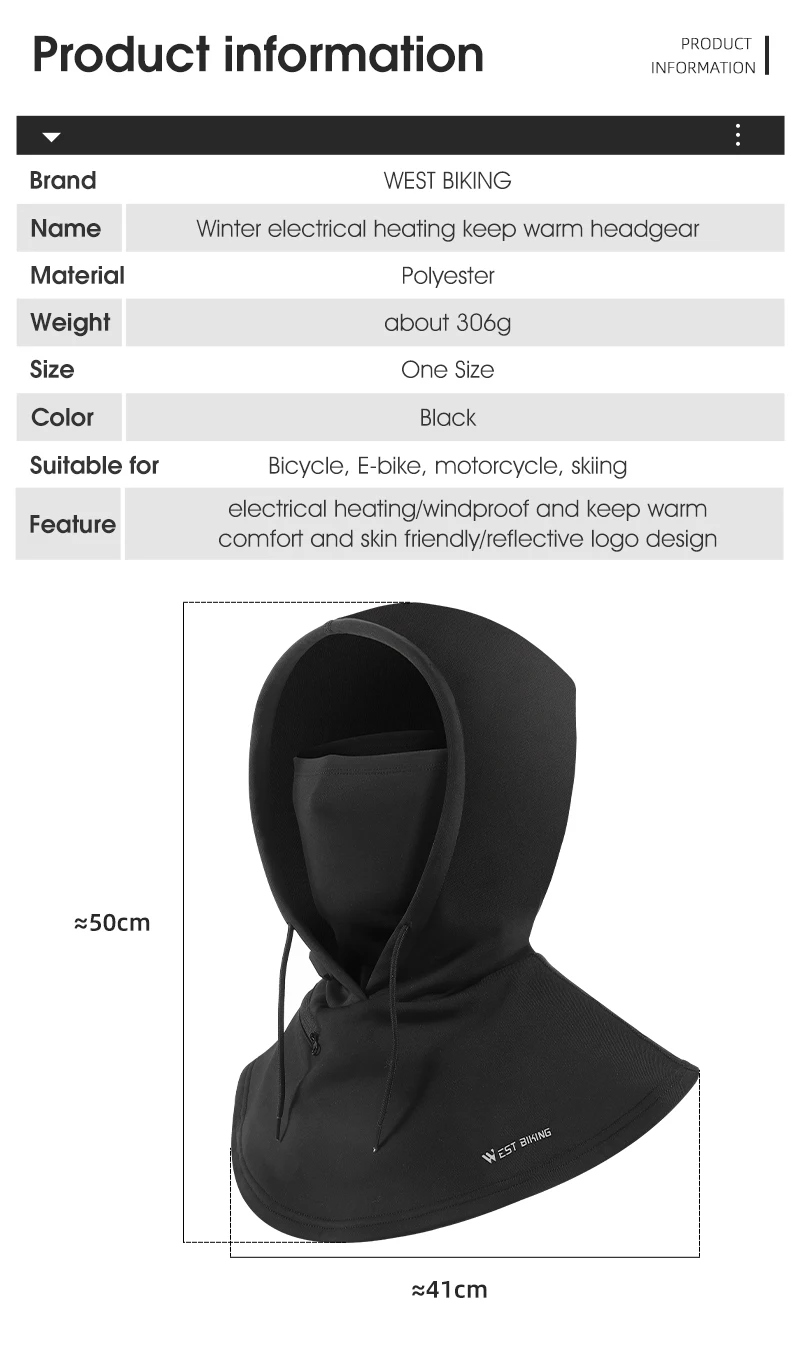 WEST BIKING Electric Heated Cycling Cap Winter Balaclava Hat Warm Face Cover Bike Heating Headgear for Ski Bicycle Motorcycle