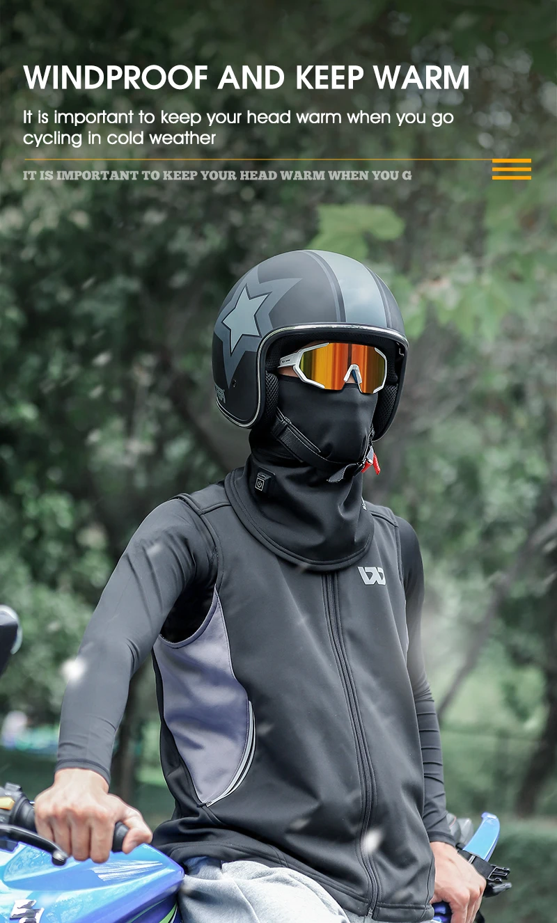 WEST BIKING Electric Heated Cycling Cap Balaclava Hat Comfortable Bike Heating Face Mask Windproof for Ski Bicycle Motorcycle Heating Headgear