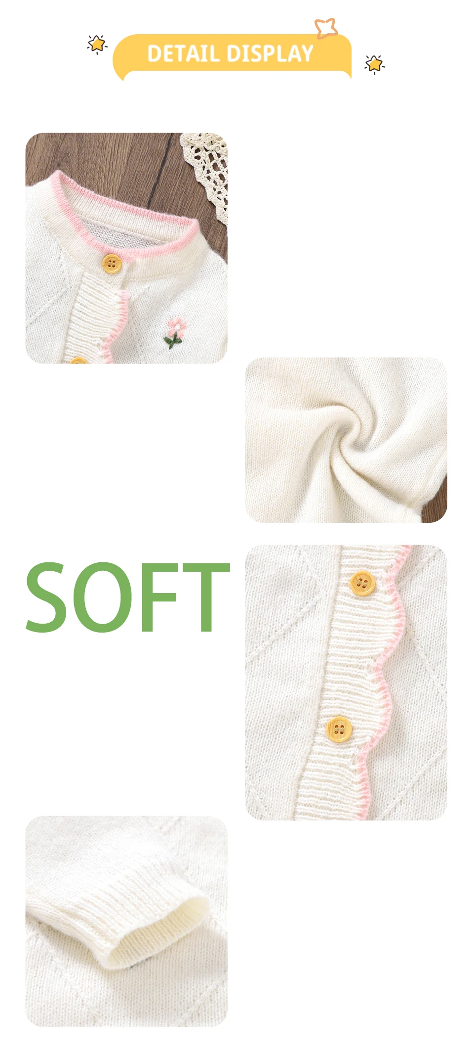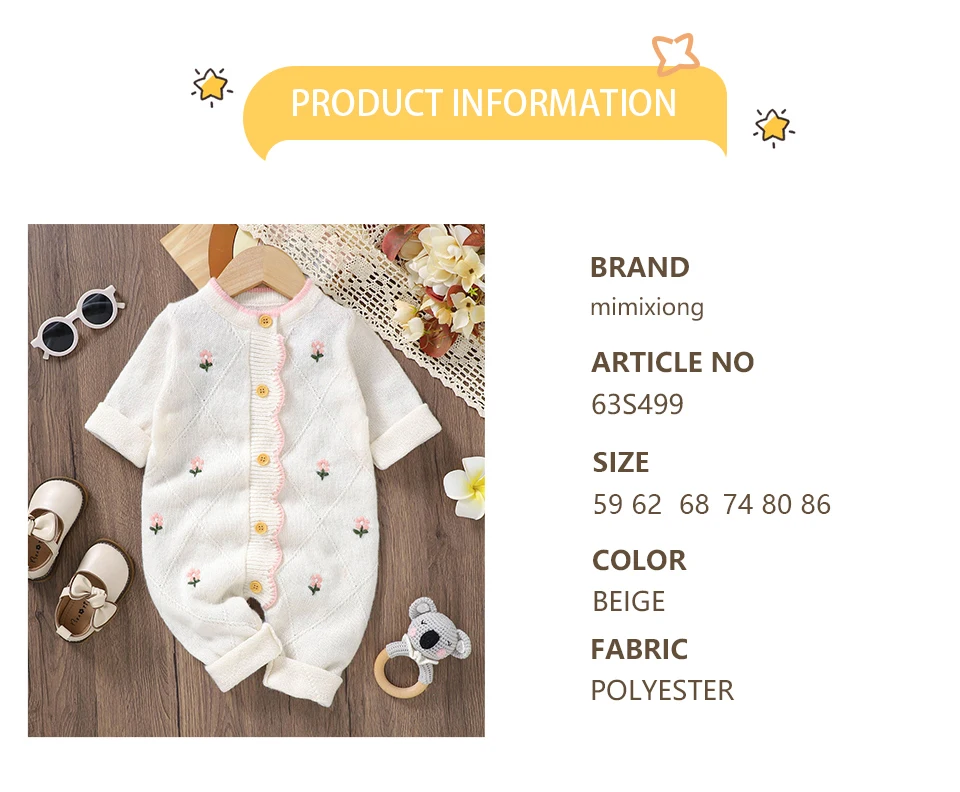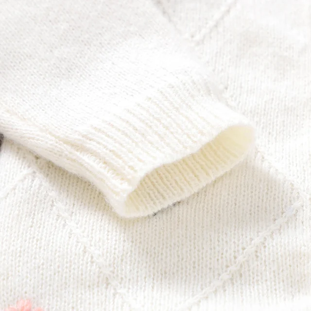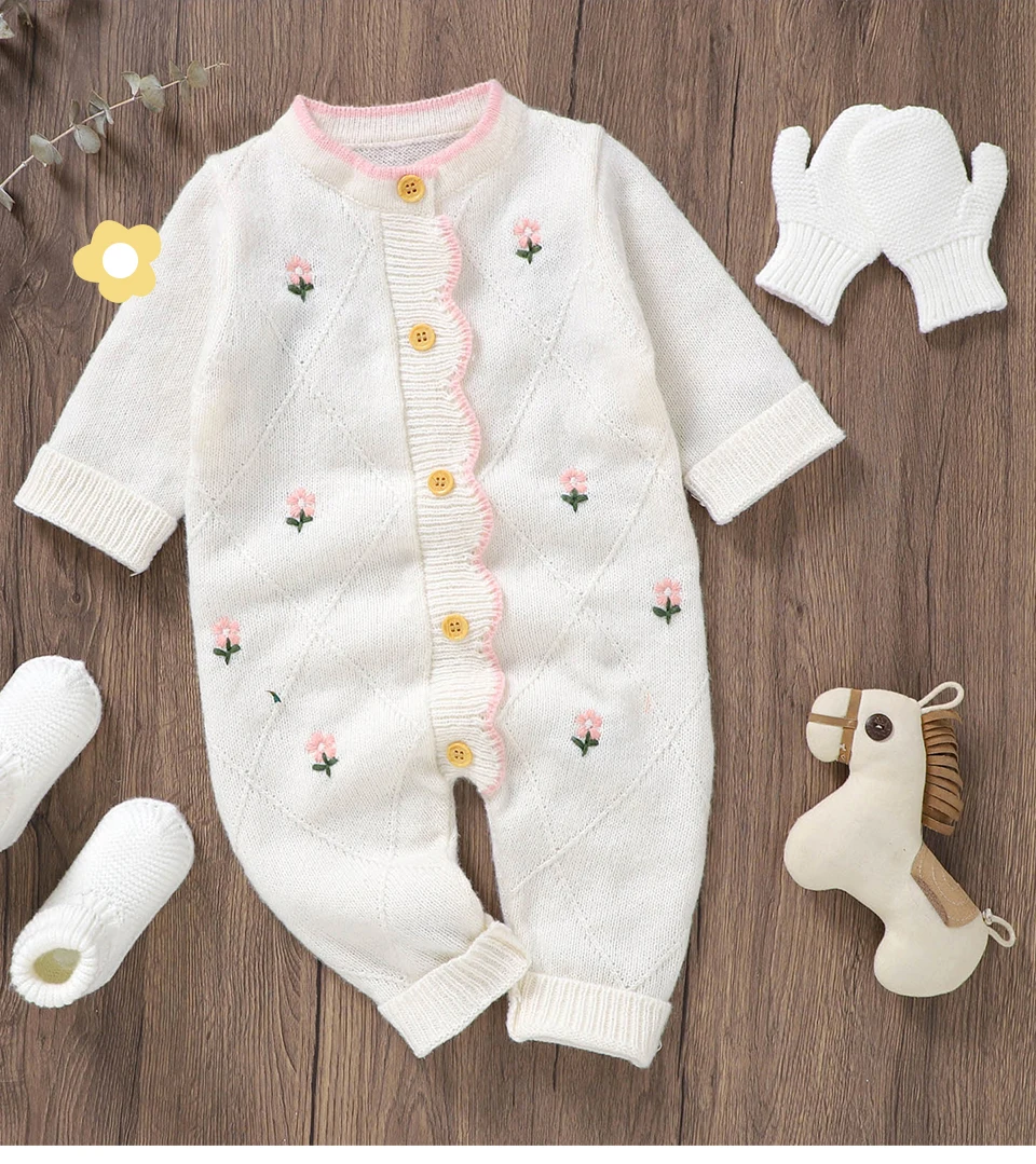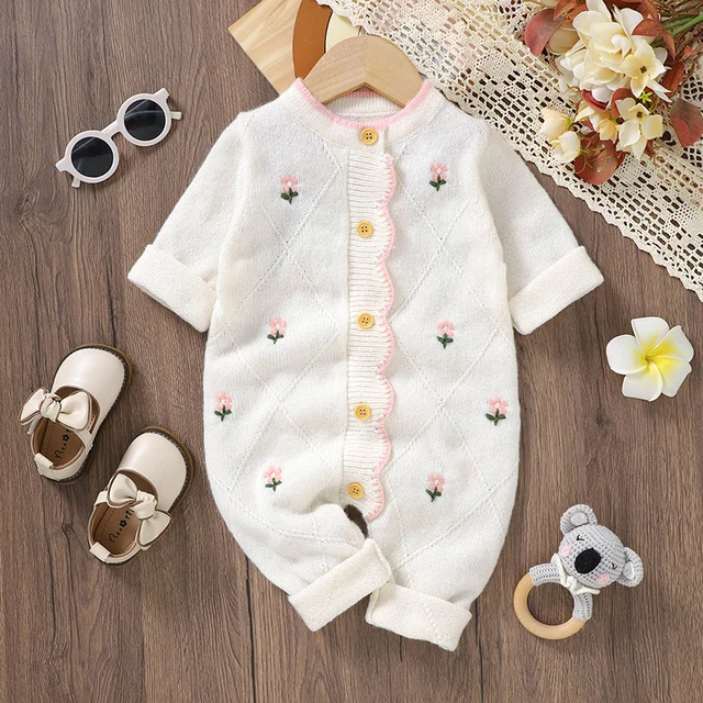 White Baby Girls Floral Rompers Knitted Full Sleeve Newborn Infant Jumpsuits Outfits One Pieces 0-18m