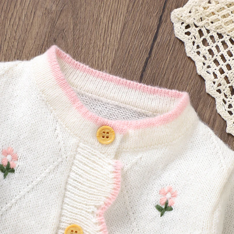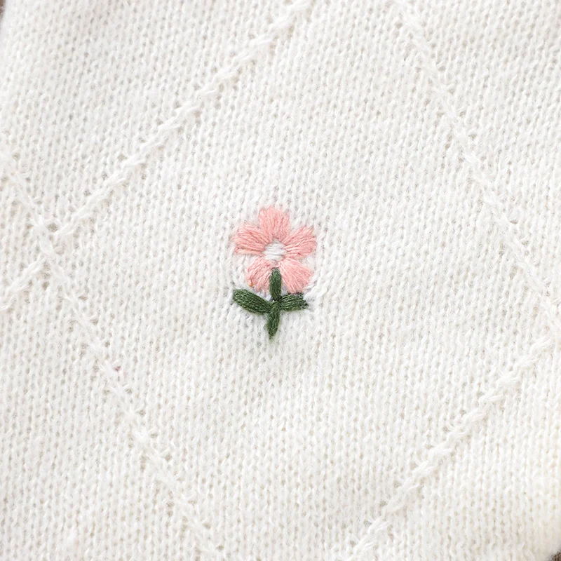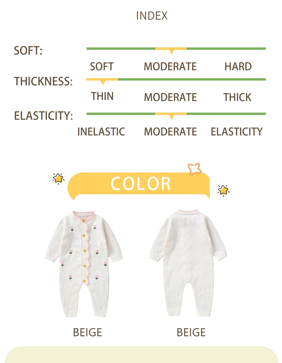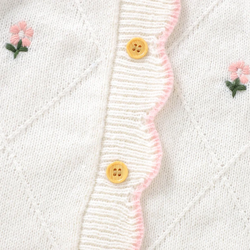 White Baby Girls Floral Rompers Knitted Full Sleeve Newborn Infant Jumpsuits Outfits One Pieces 0-18m