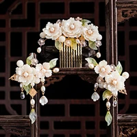 White Flower Hair Clips Hairpin Side Combs Chinese Hanfu Hair Accessories Set Vintage Handmade Hair Sticks Women Retro Jewelry