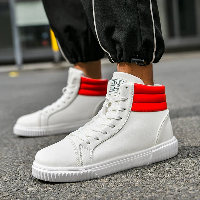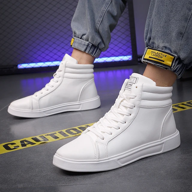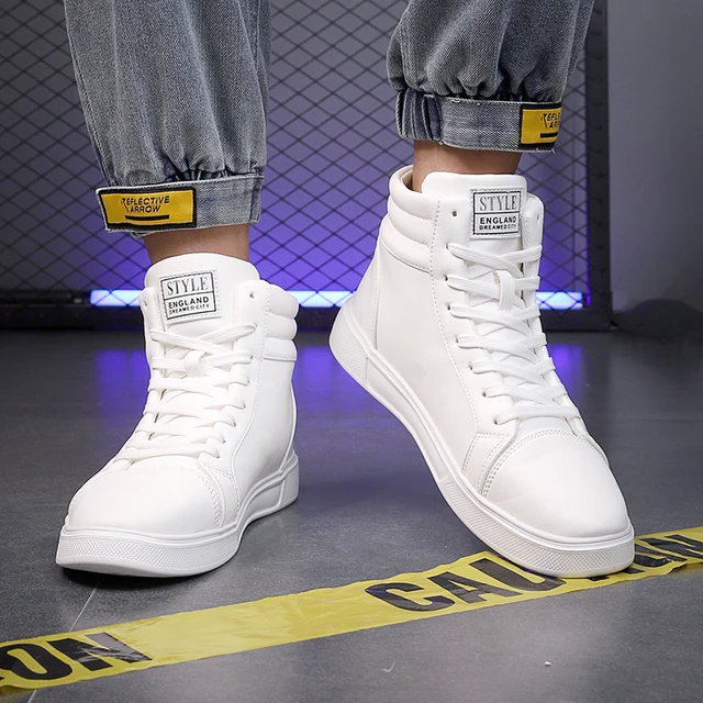 White High Top Skateboard Shoes Unisex Trend Lace-up Men’s Skate Shoes Fashion Casual Sneakers