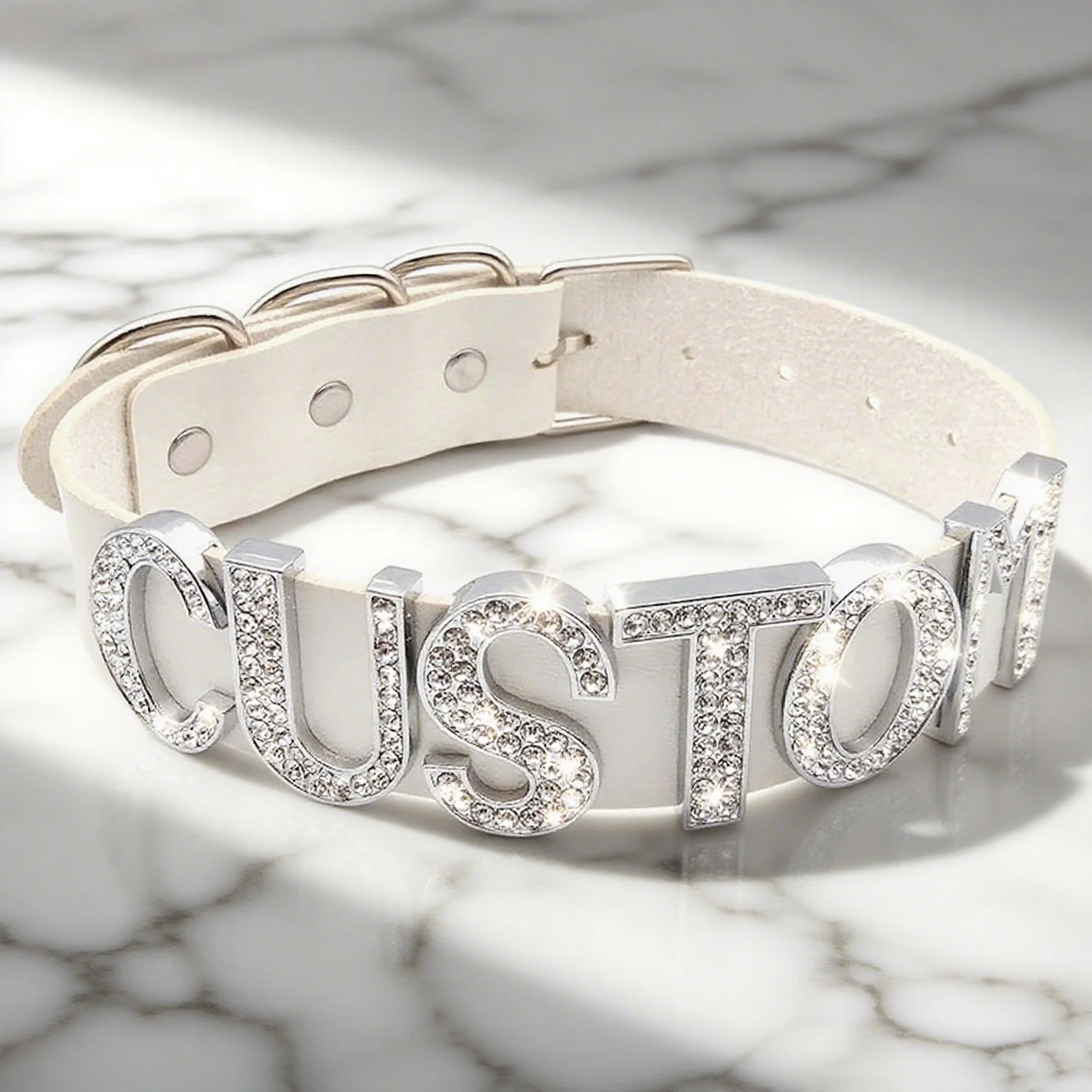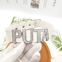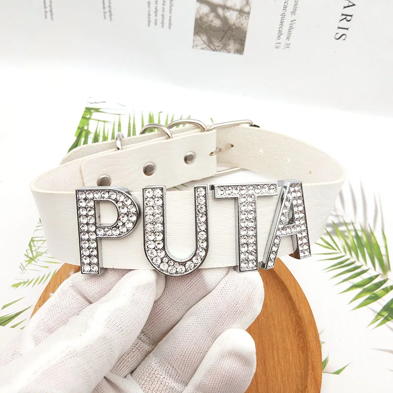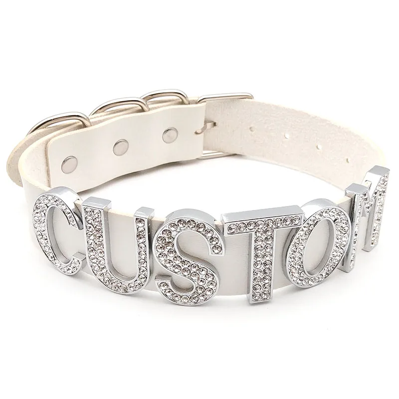 White Leather With Rhinestone Letters Custom Name Choker Necklaces For Women Men’s Party Jewelry Gifts Personalized Products
