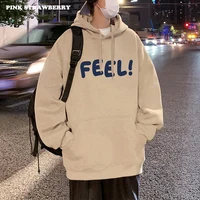 White Letter Print Hoodie Sweatshirt Men Autumn Winter 2025 New Oversize Plush Long sleeves Coat Pullover