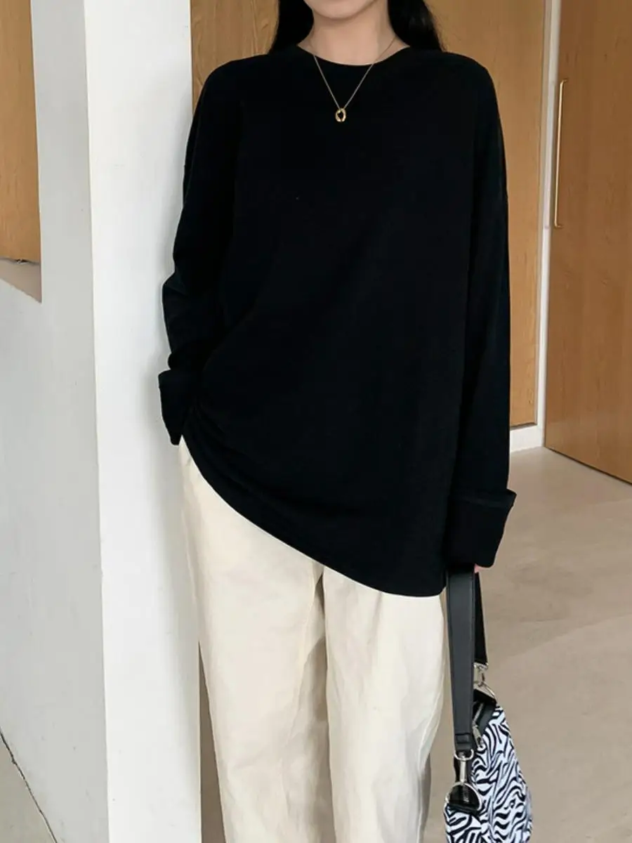 Featuring a round neck design and a solid color pattern, this T-shirt aligns with the 2023 autumn fashion trends, making it a trendy addition to your wardrobe.