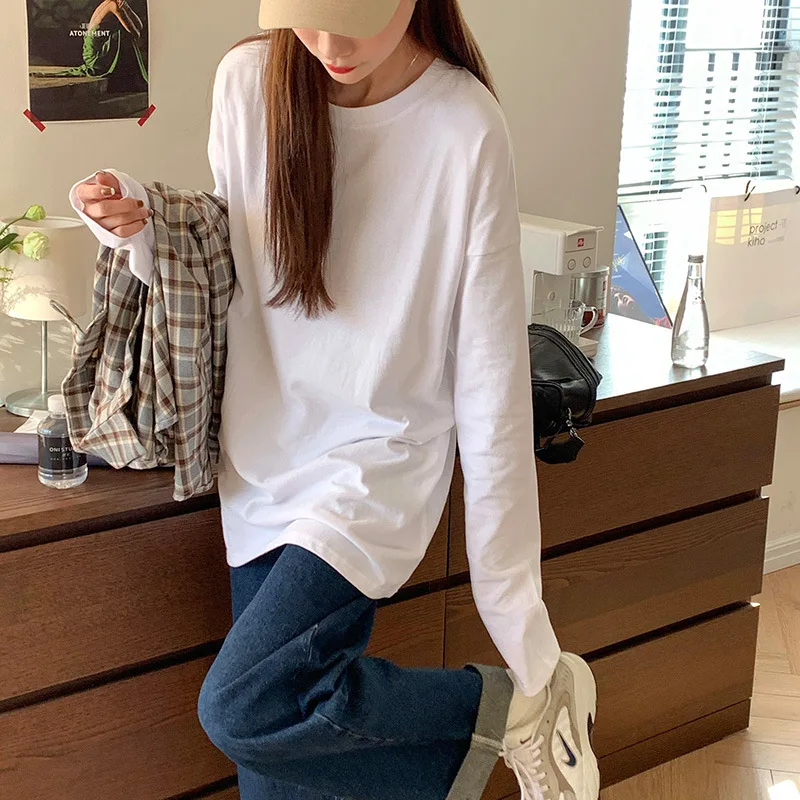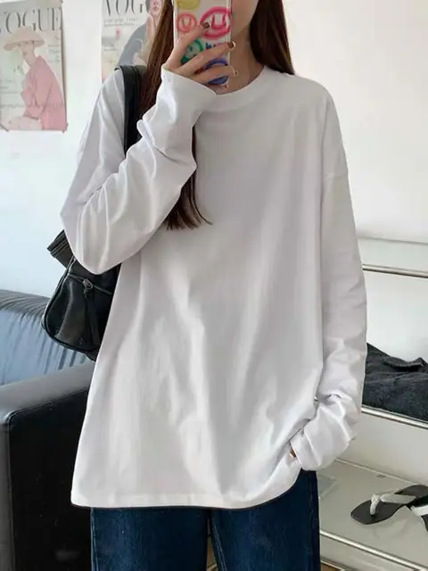 This white base layer shirt is a versatile piece that can be worn as an inner layer or as a standalone top, perfect for students and fashion-forward individuals.