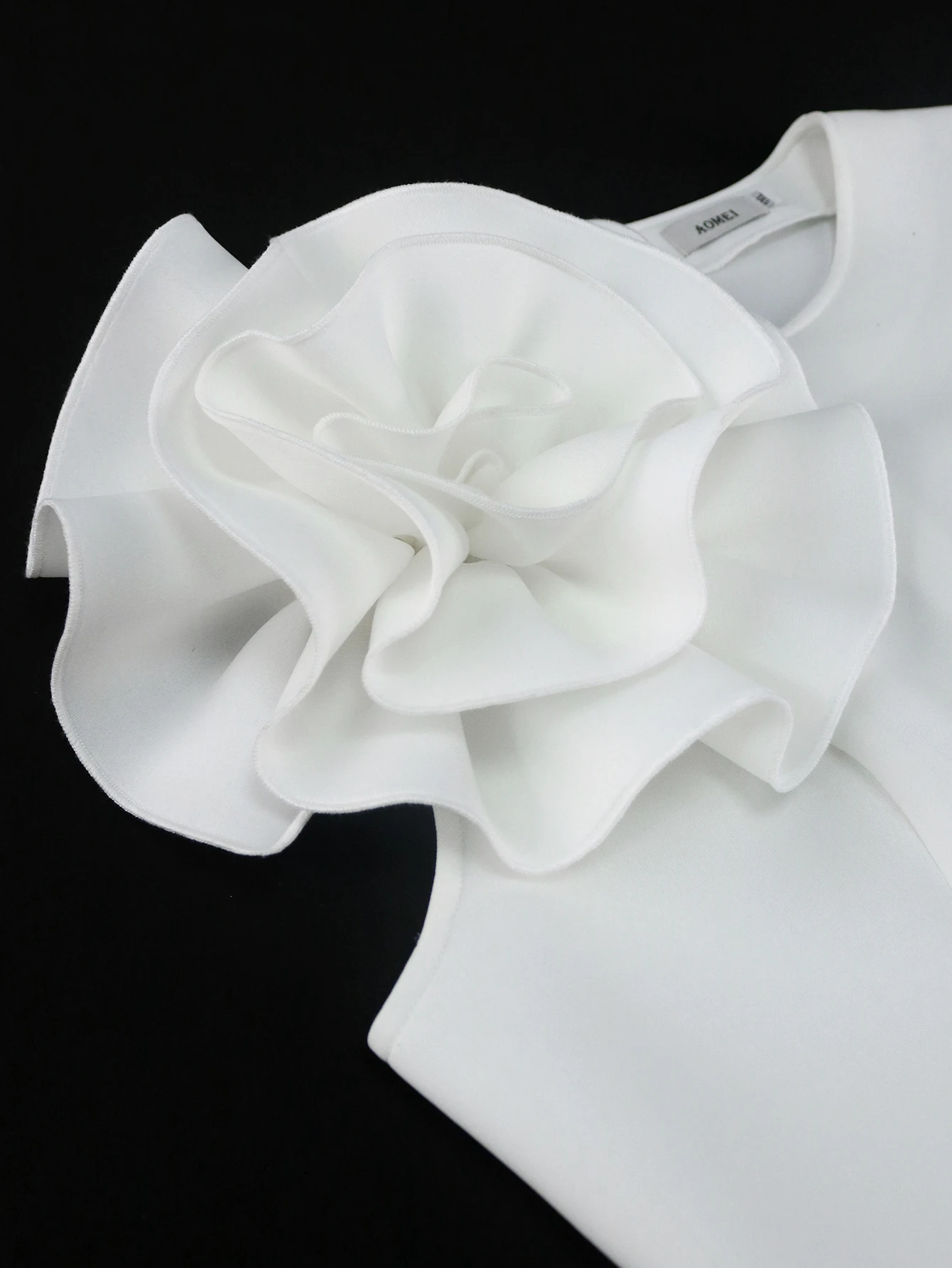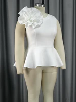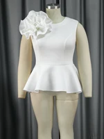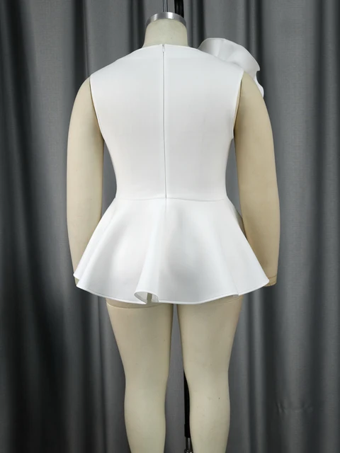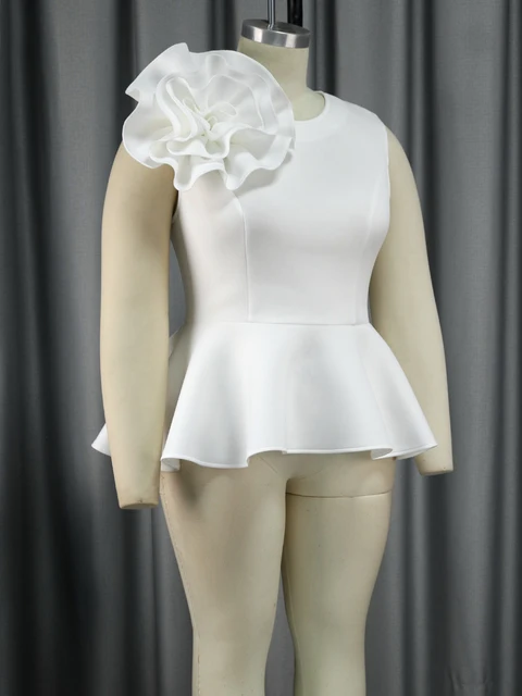 White Peplum Blouses for Women Plus Size 3XL 4XL Tank Sleeveless Flower Appliques High Waist Ruffles