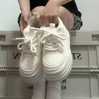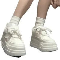 White Thick Bottom Slip-On Sports Shoes for Women Summer Platform Sneakers round Toe Casual Heightening Shoes Female