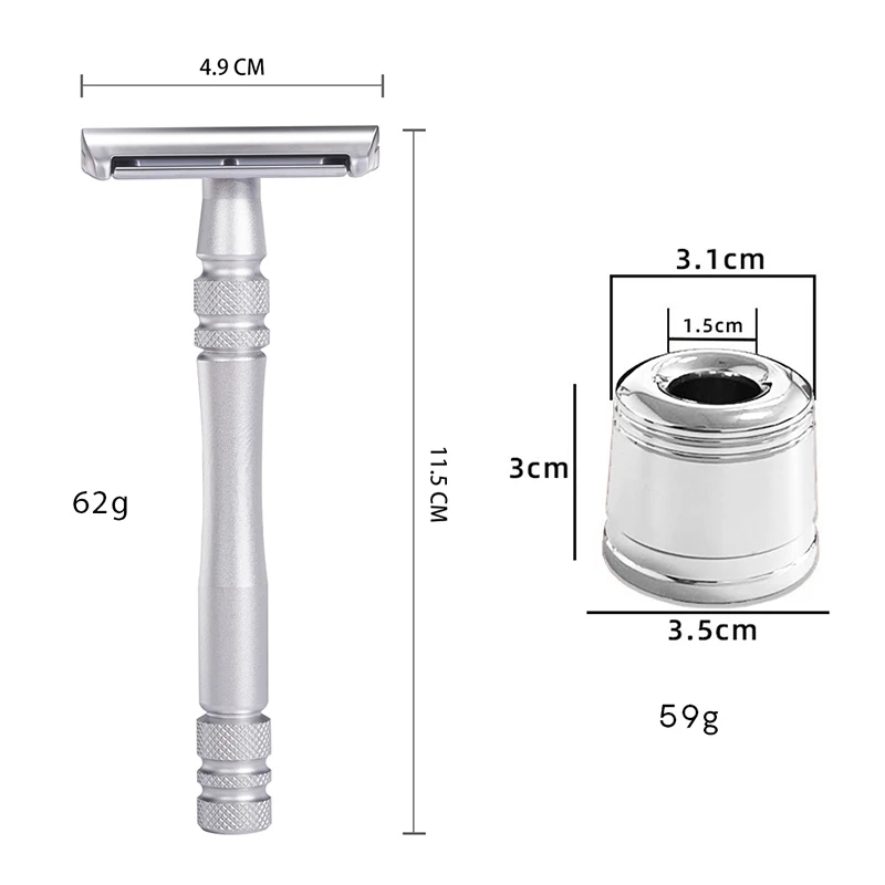 · Our safety razor Handle and Holder Base is made of aluminum alloy. Shaving Head made by Zinc alloy. High-quality razor slicer, without irritation and we guarantees a long service life