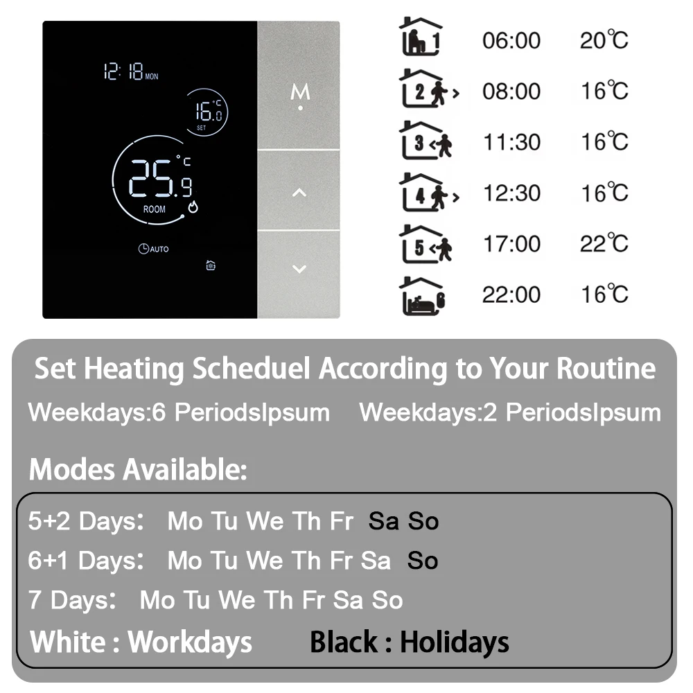 Note: 16A: for electric heating; 3A: for water heating + for gas boiler
