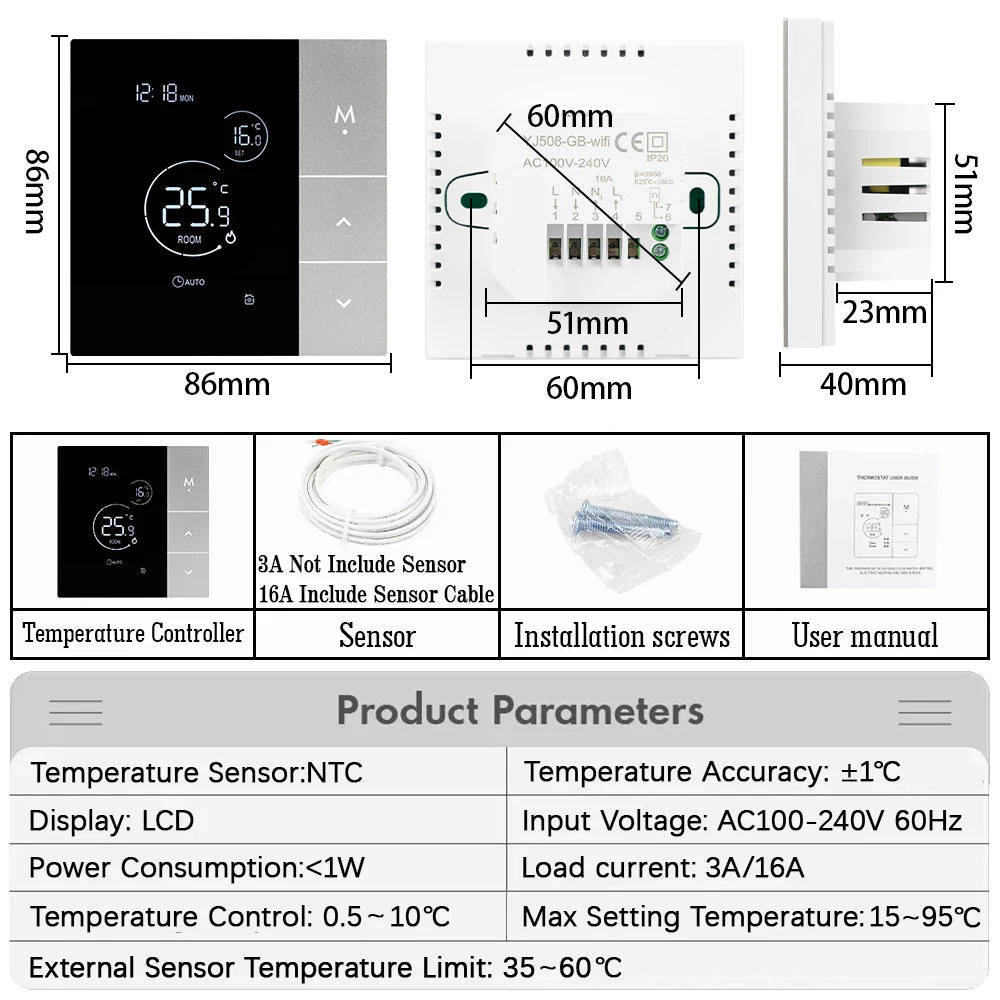 1*Sensor probe(only 16A electric floor heating include sensor cable)
