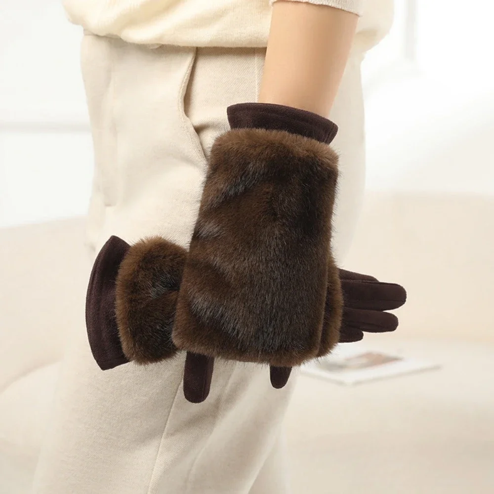 Windproof Warm Women’s Gloves – Autumn Winter Faux Fur & Faux Suede, Touch Screen, Thickened